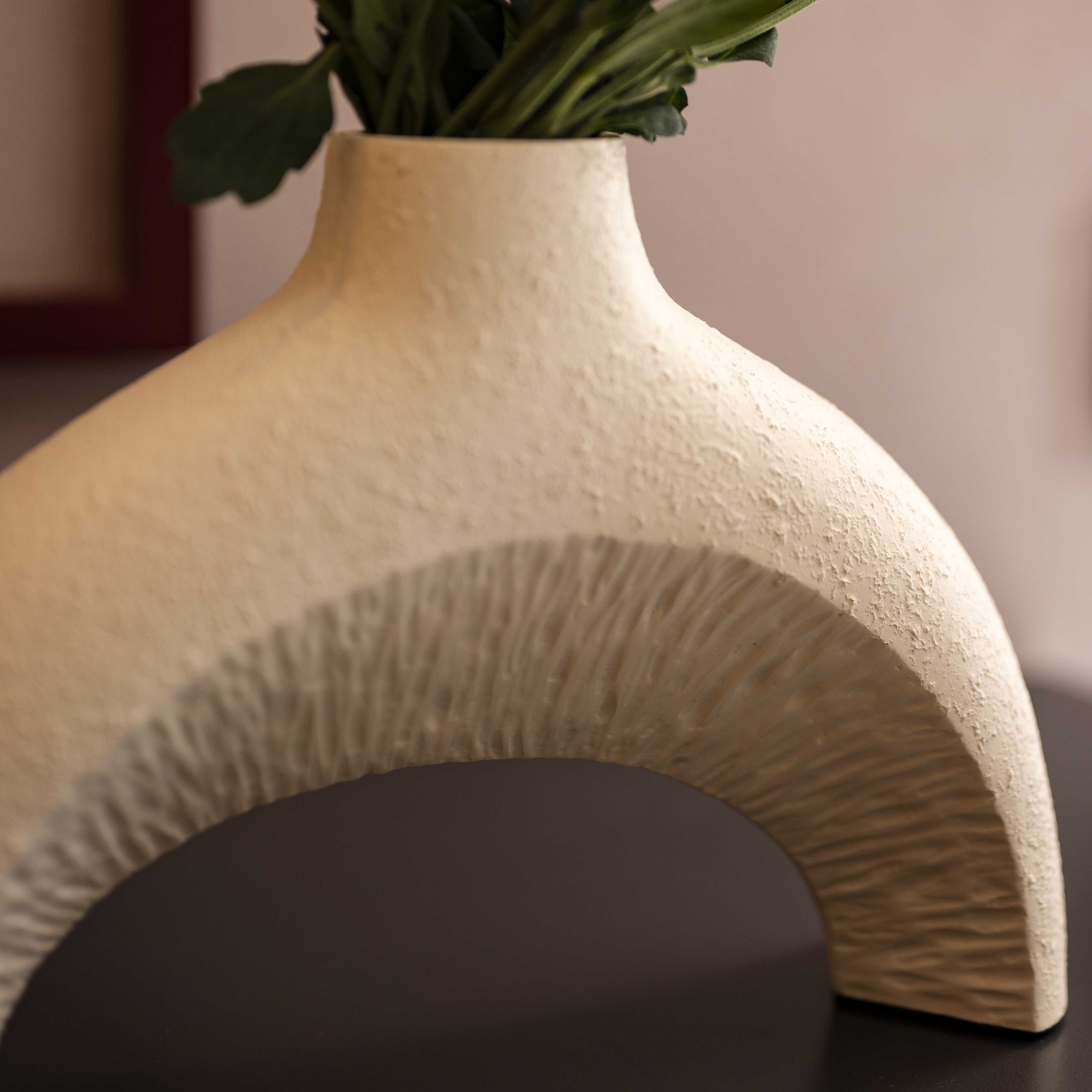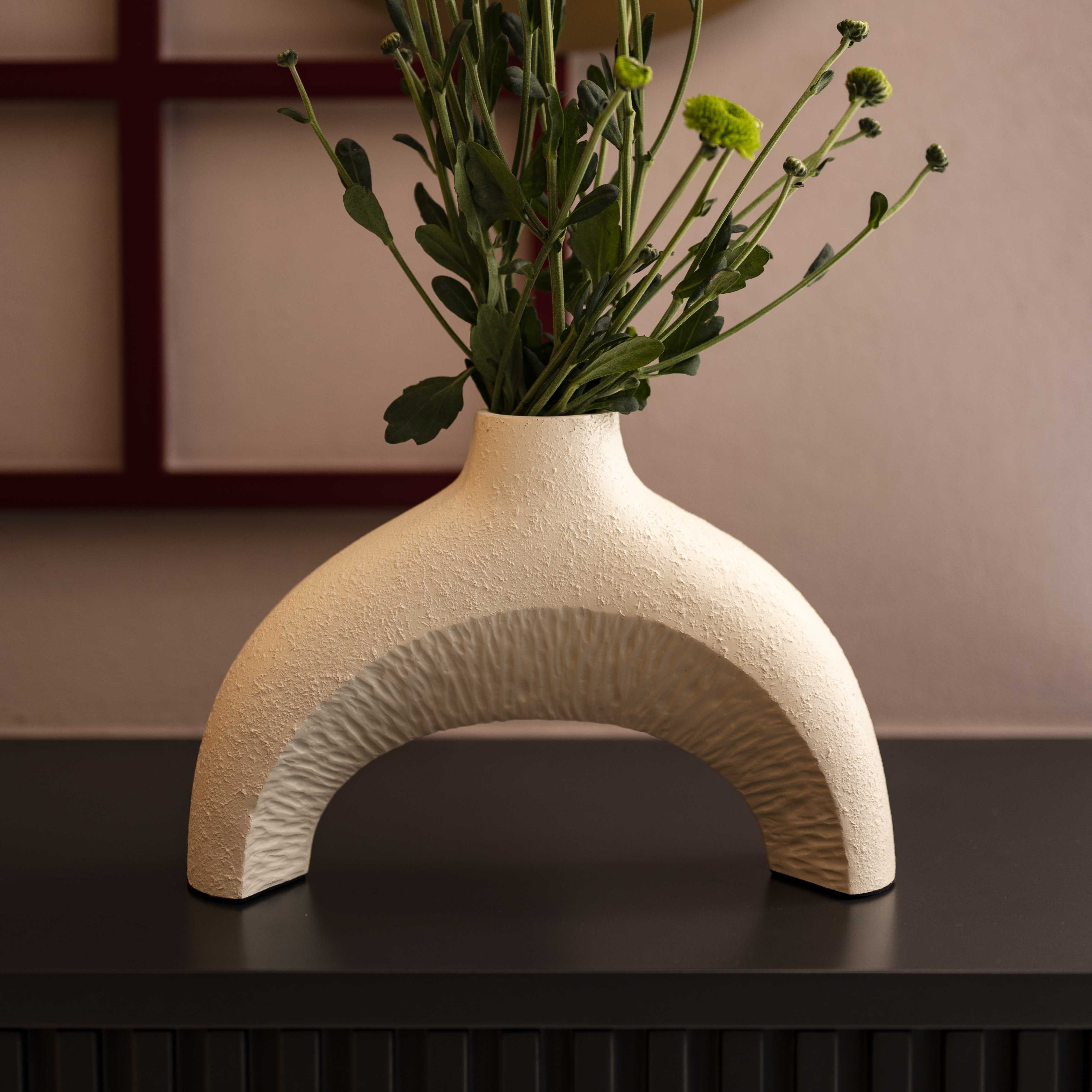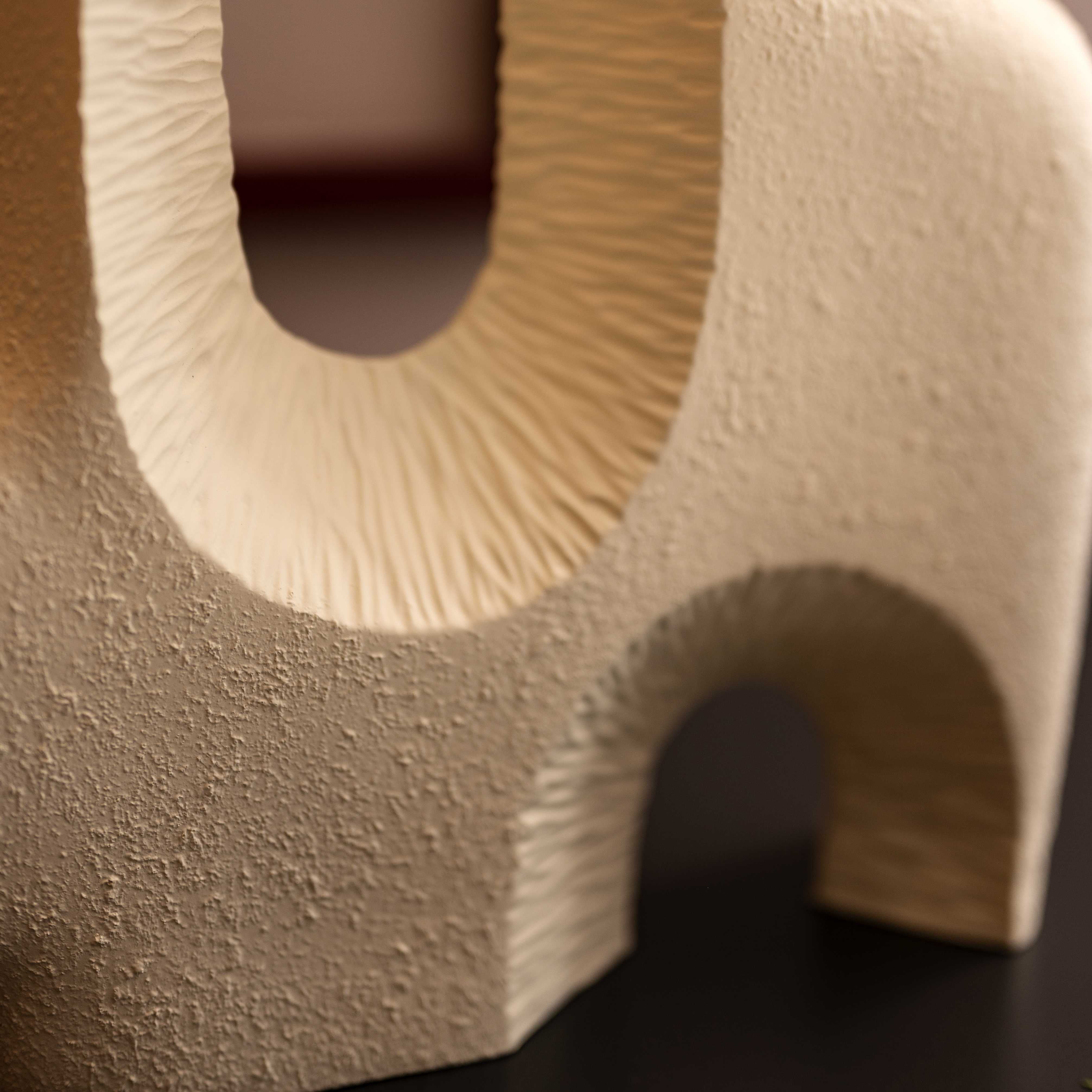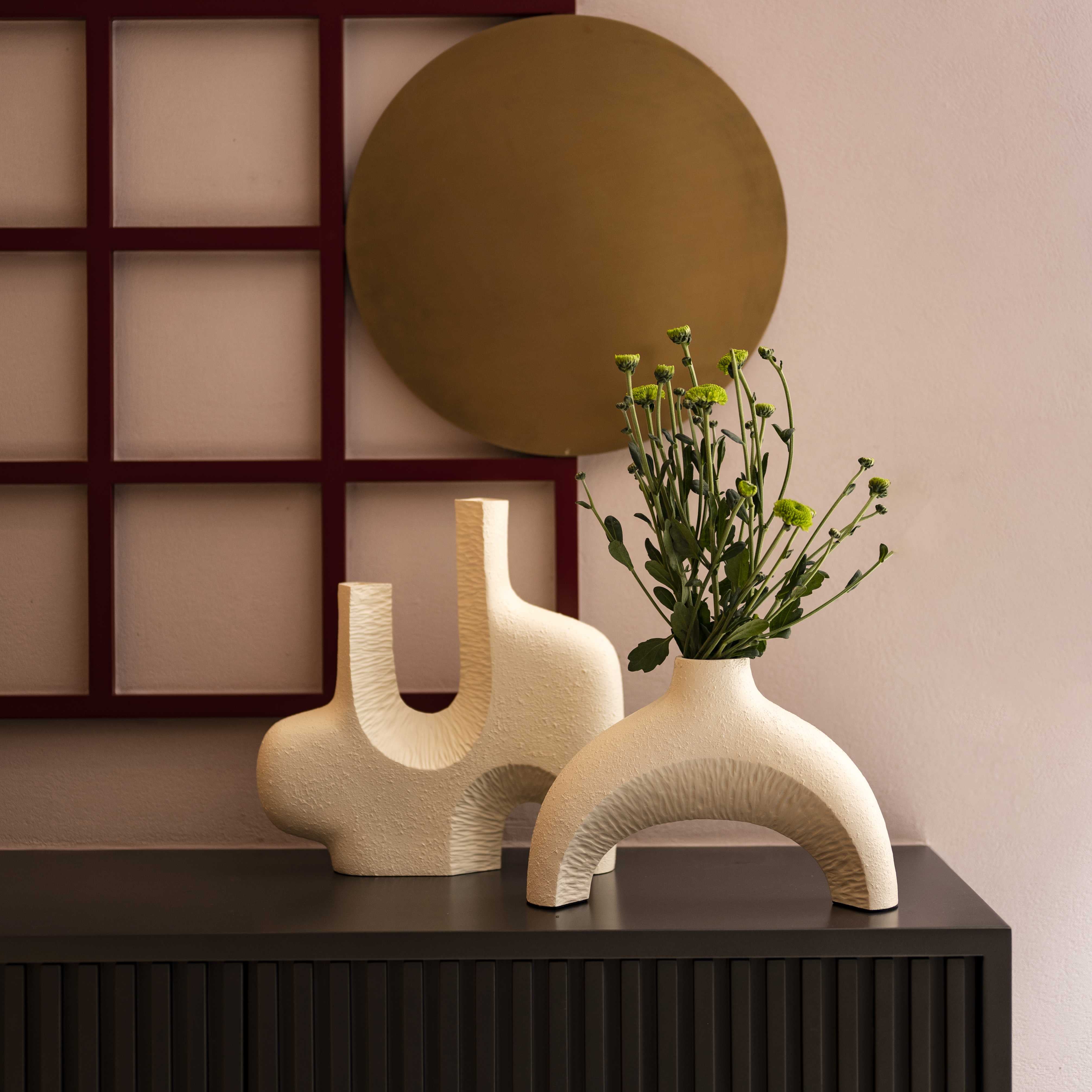 Avant area set of two stunning vases. This piece is abstract, raw and almost reminds you of the beach. These pieces with a few stems of colorful blooms, would bring in a lot of character to any corner of your space.