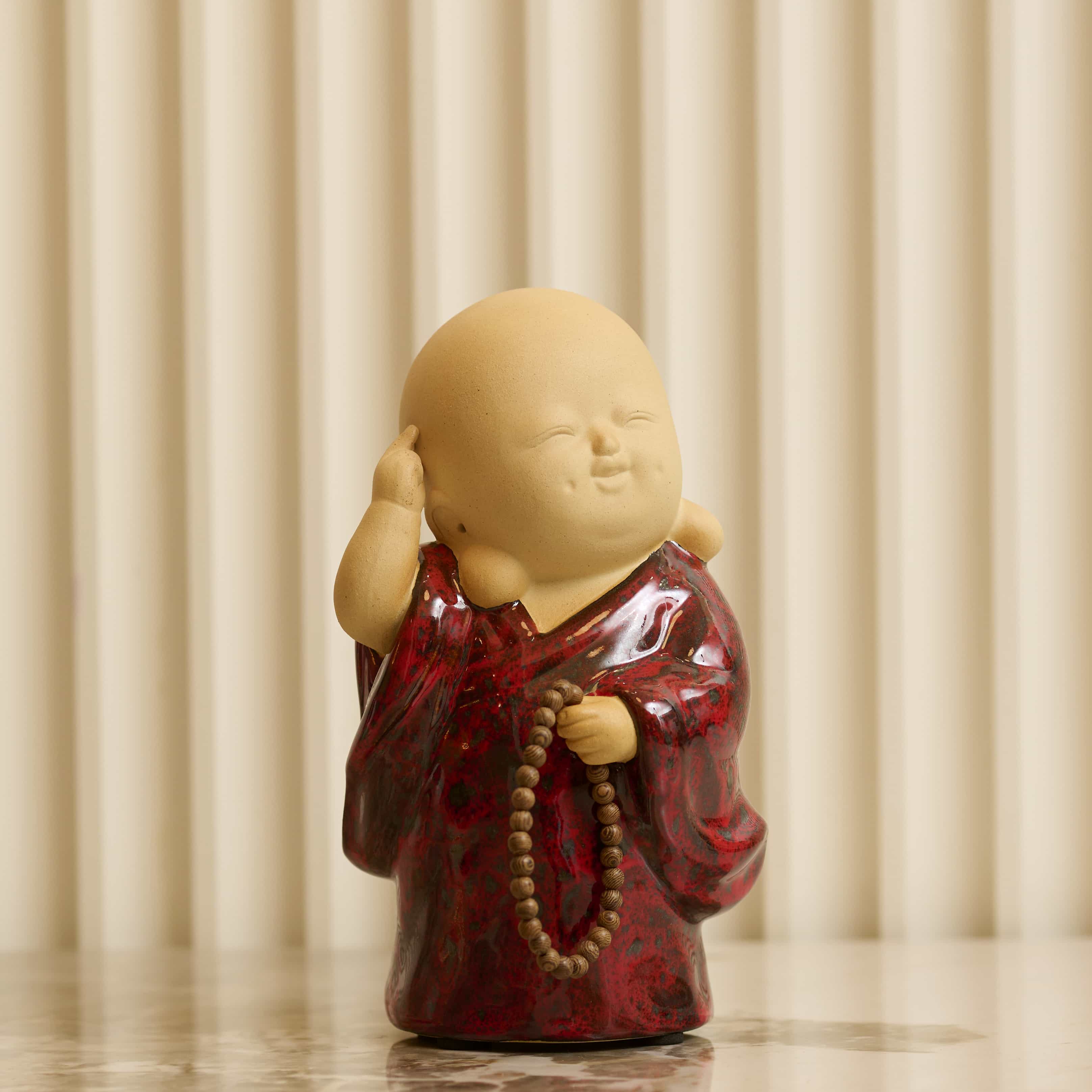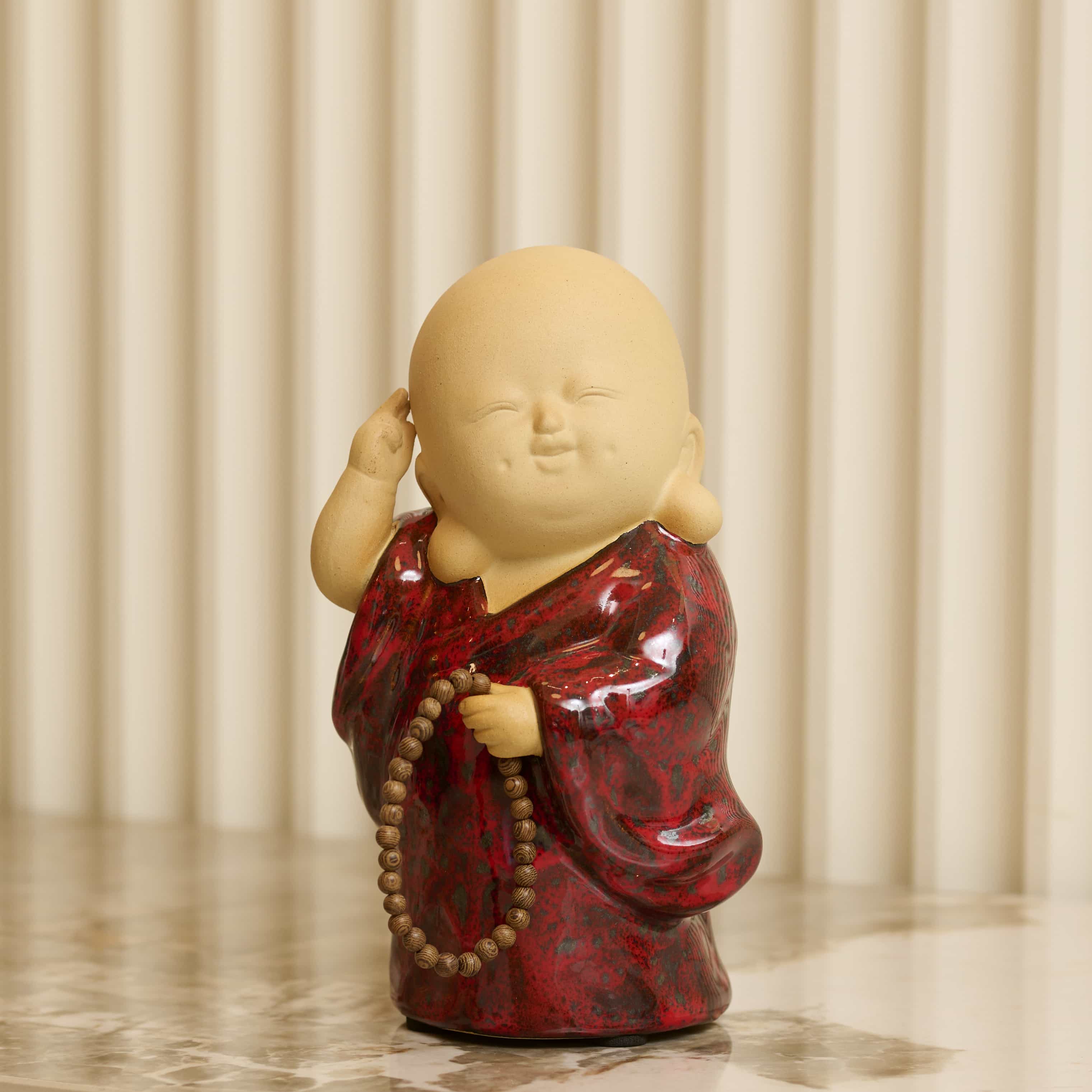 Cracked Up Buddha has got to be our favourite mood of this little buddy. Wearing bright clothes, with the usual rosary in hand and a face so full of life and light, it makes us smile too. We suggest you place this adorable piece at your entrance to greet anyone that enters with sheer cheerfulness.