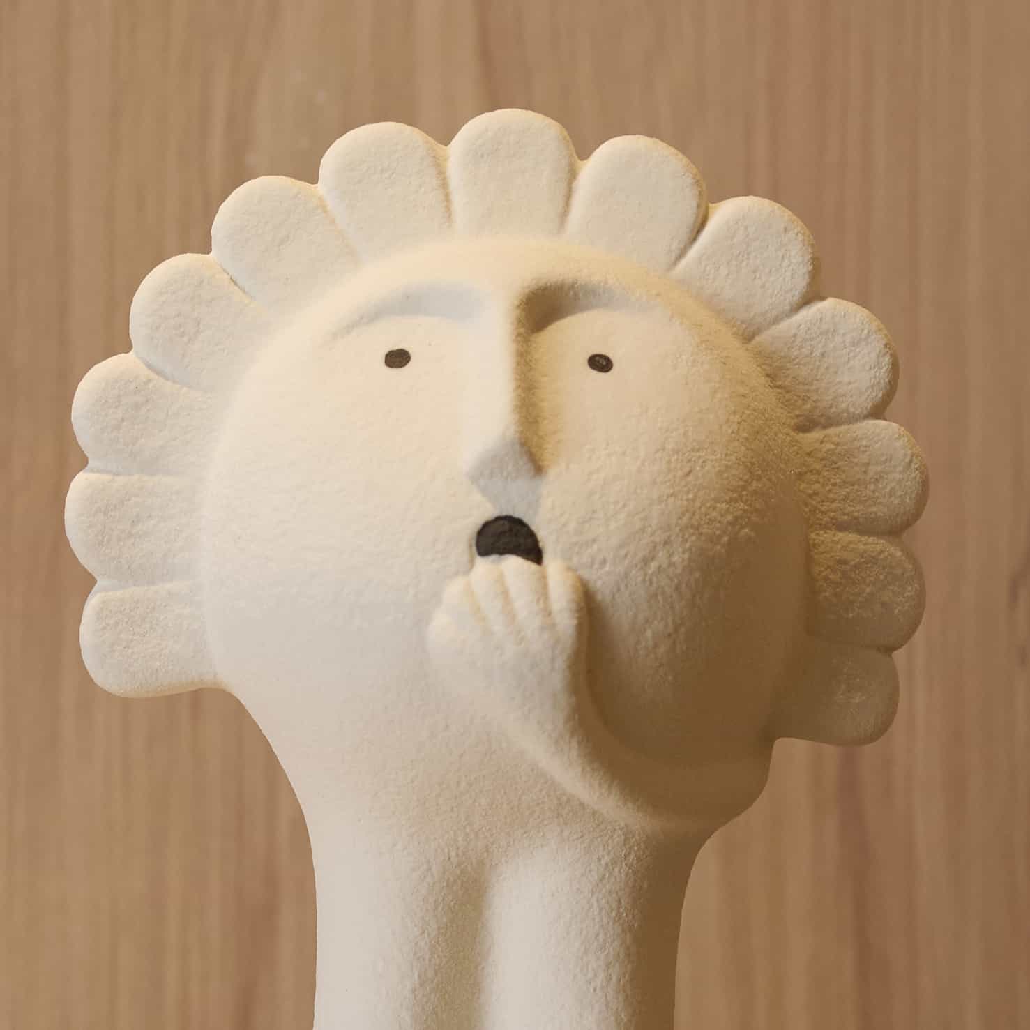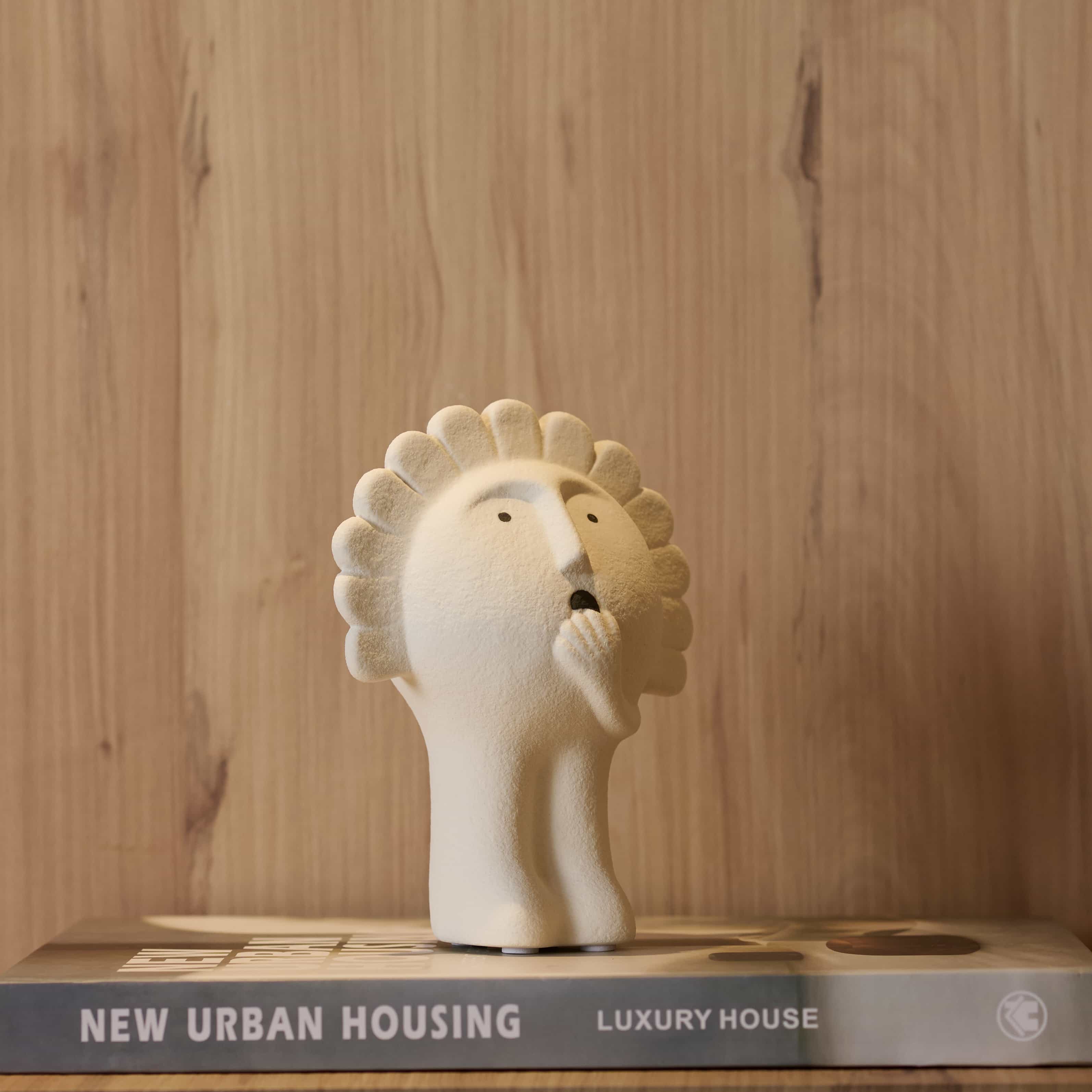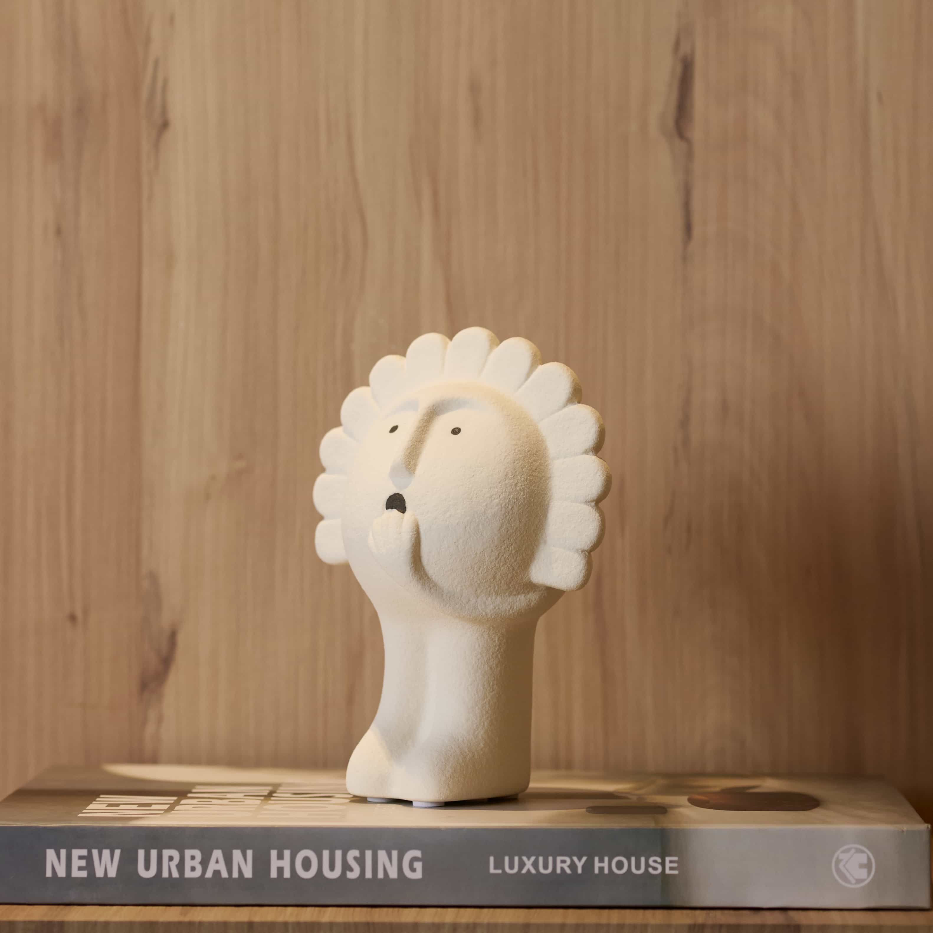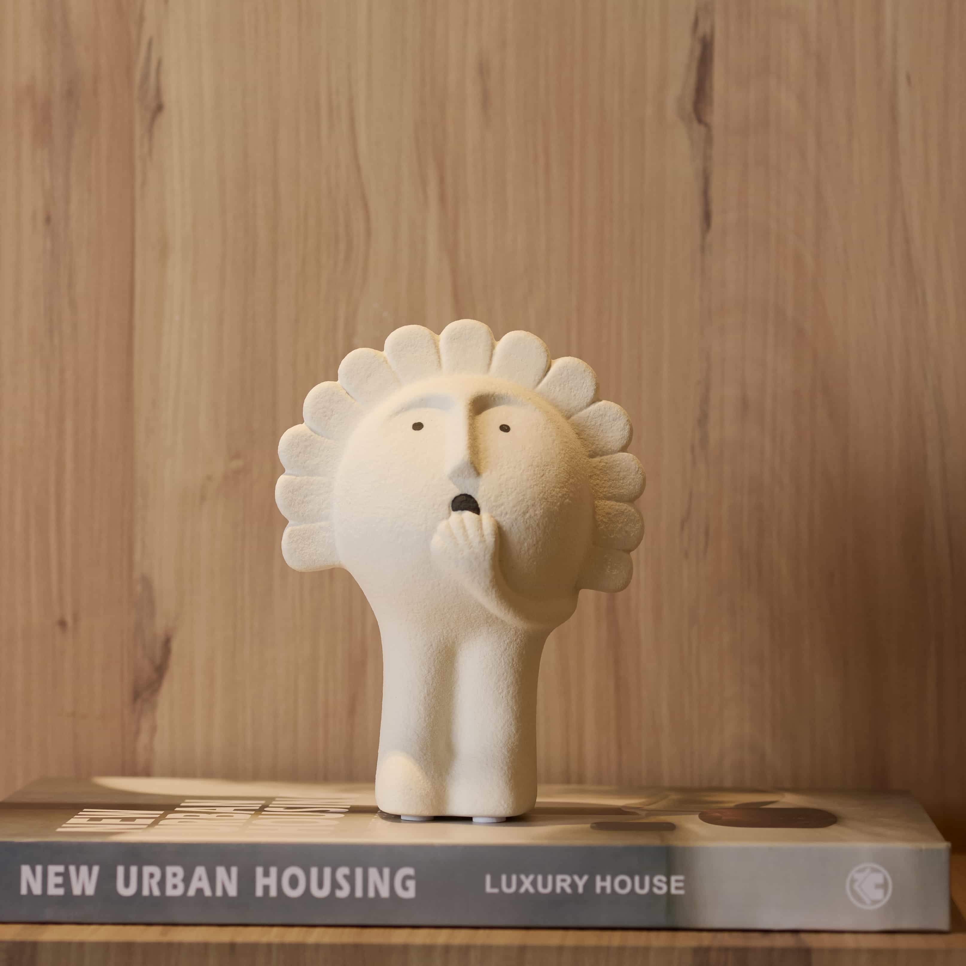Daydream is a gentle white curio with a frilled halo and small surprised face, it feels like a soft gasp of wonder. Simple, playful, and calming, it invites smiles and keeps small corners feeling cared for.