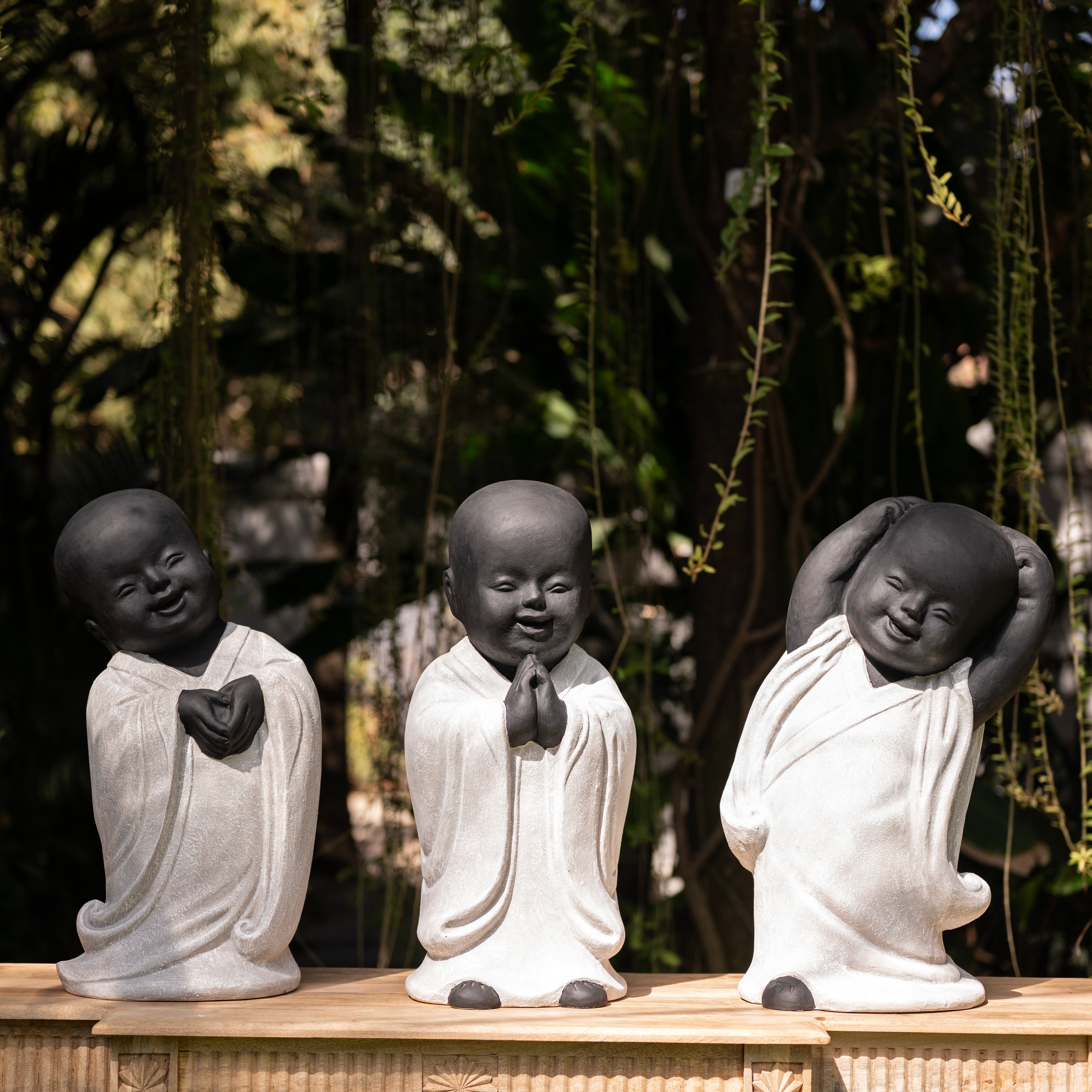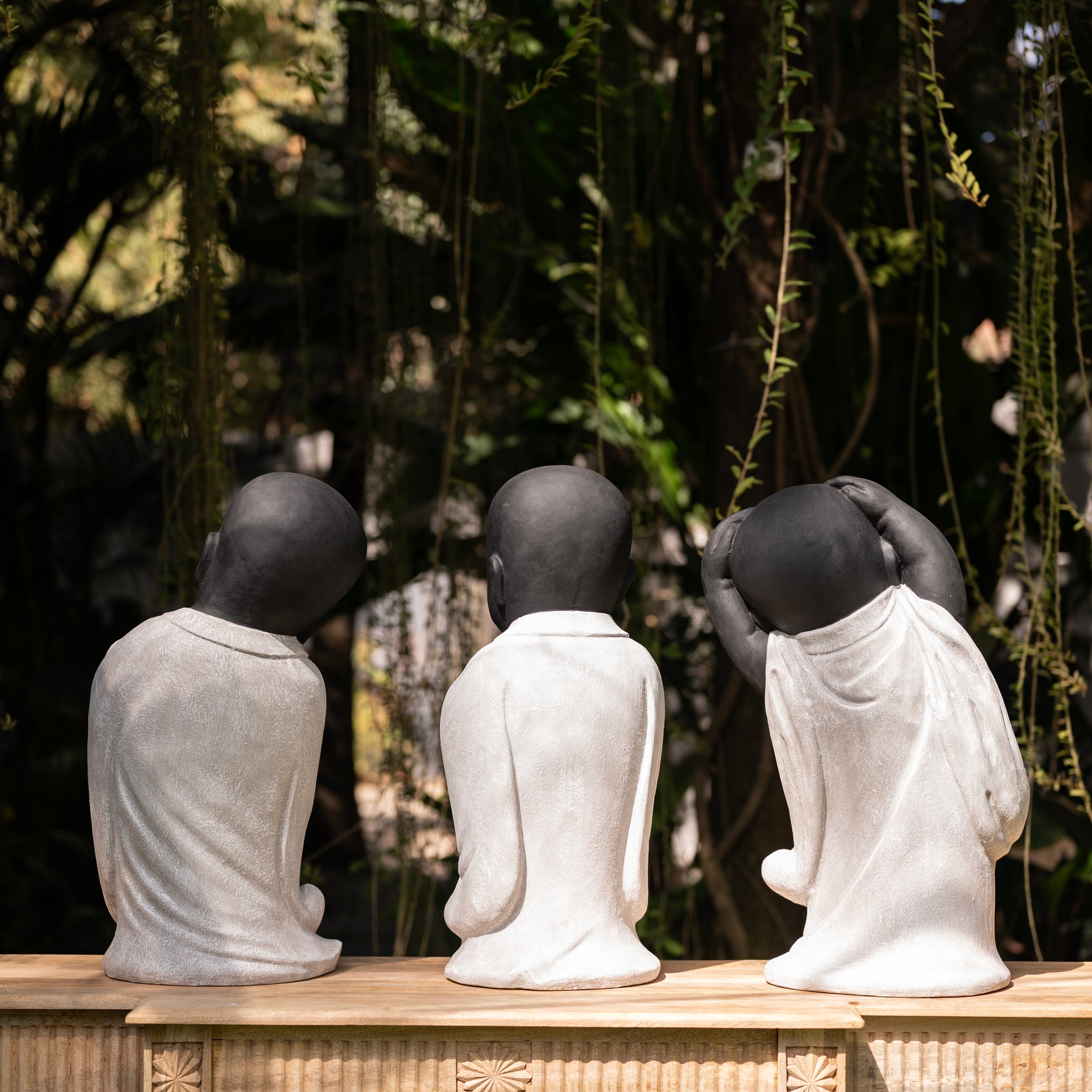 The artisan carved these figures as a sequence of gestures, where form unfolds like a small architecture of emotion. Together, they hold joy not as expression, but as structure—balanced, open, and quietly alive in stone.