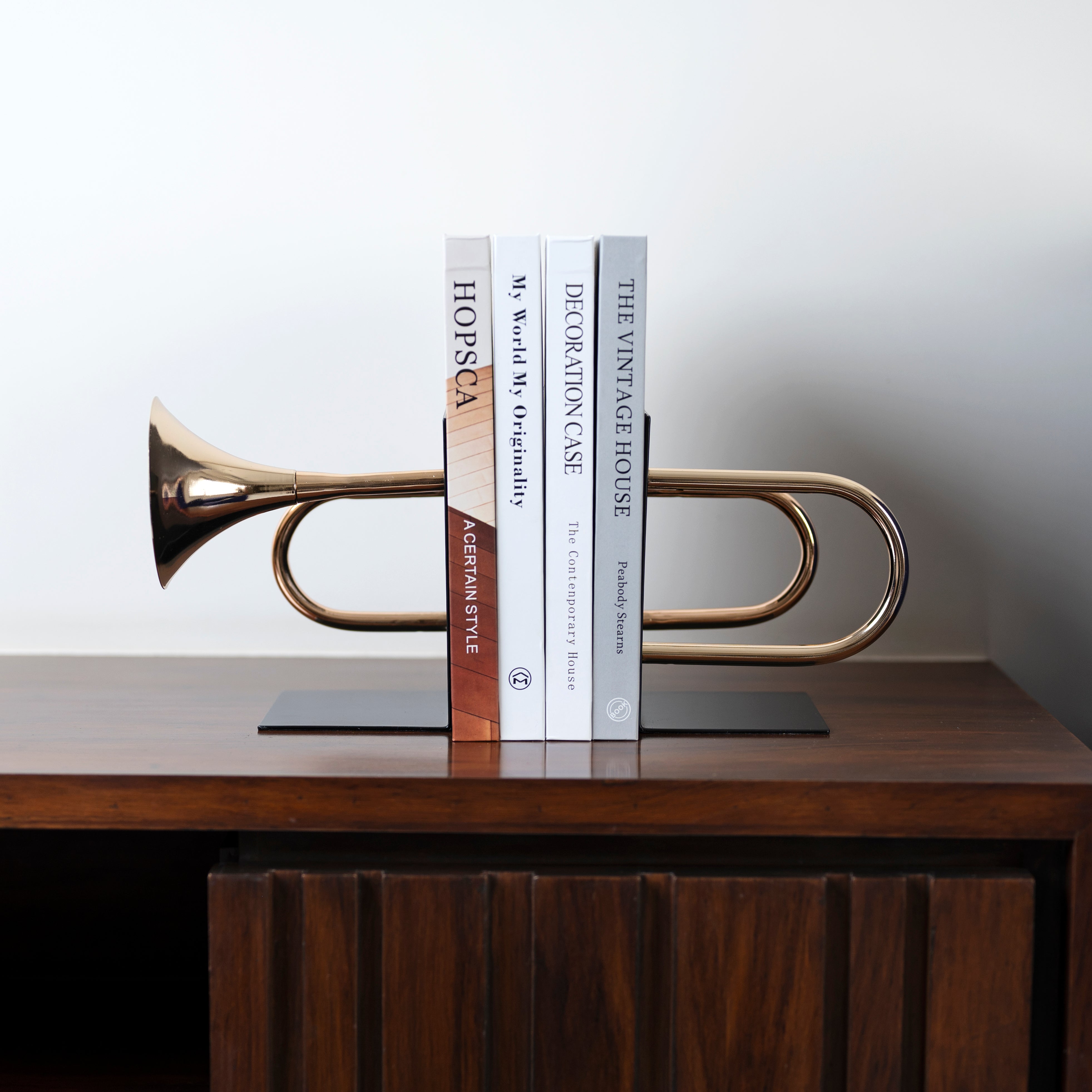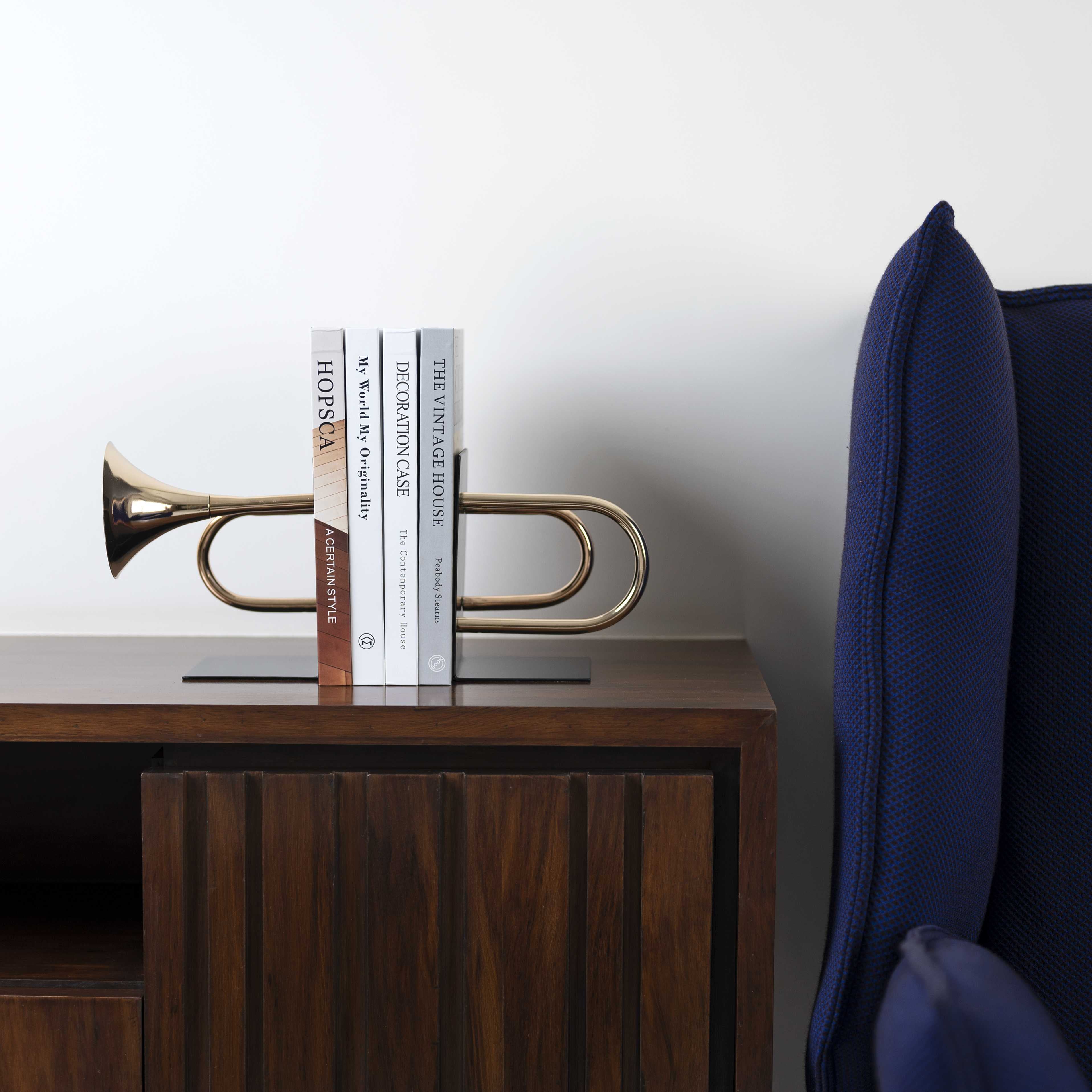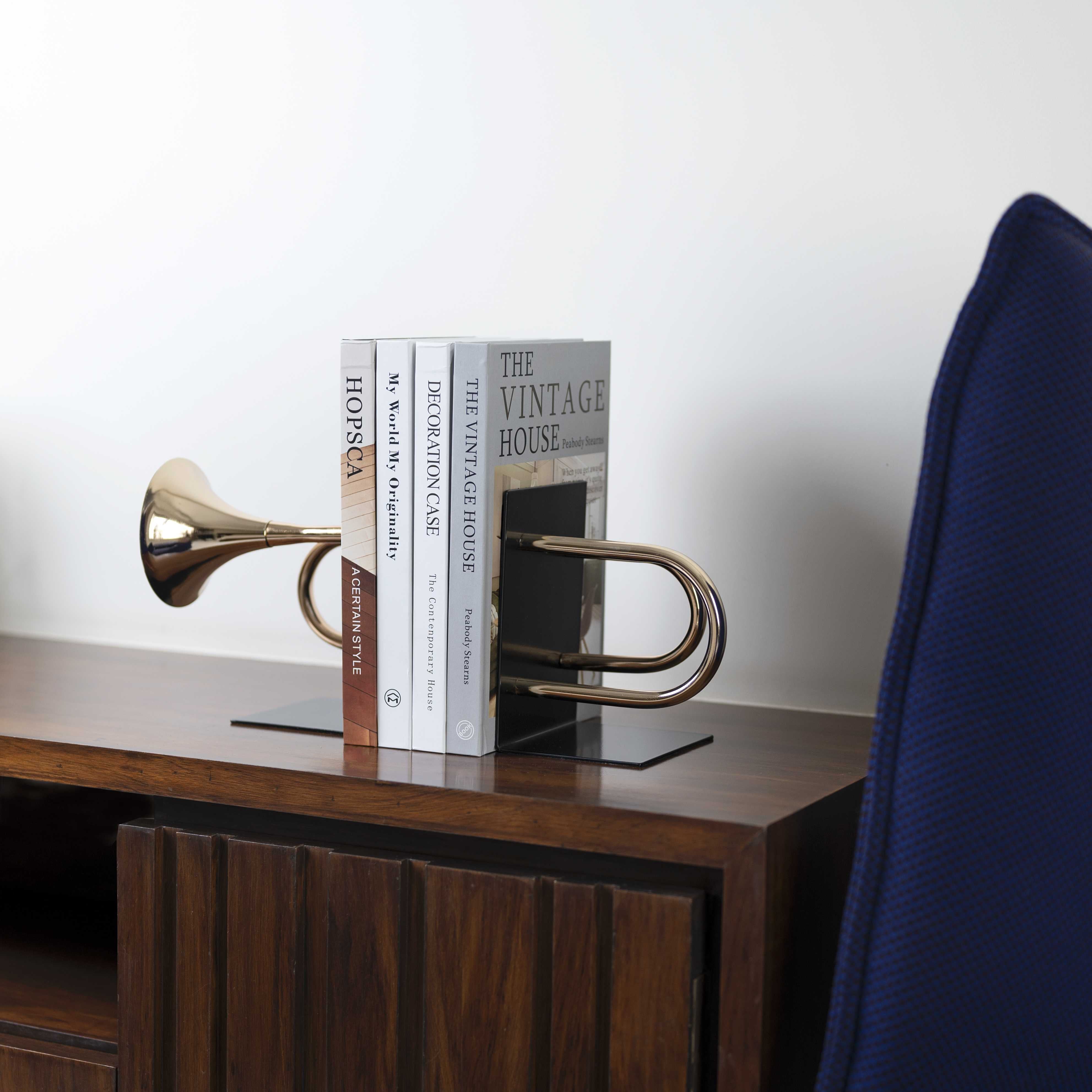 Regal Bugal is a set of bookends stylishly designed in the shape of bugal which is a musical mouth instrument. If you love music and like adding into your space elements of it, this piece would be incredible for you. It is sleek and elegant owing to its regal gold.