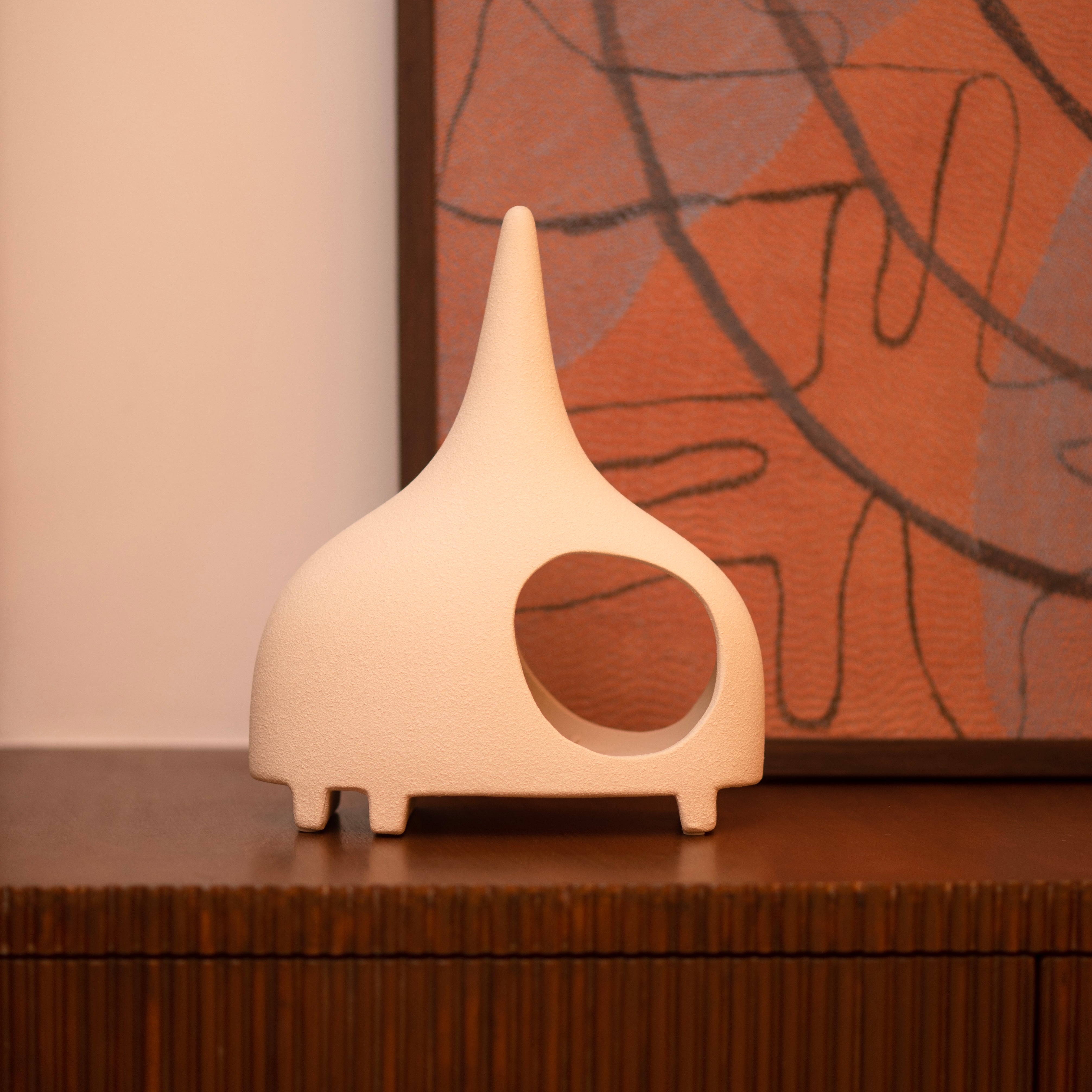 Shack Up is an adorable piece in a structure similar to that of a hut. This piece is modern, stylish and unique. The earthy raw vibe of it, makes this piece stand out, and allows effortless styling into any space.