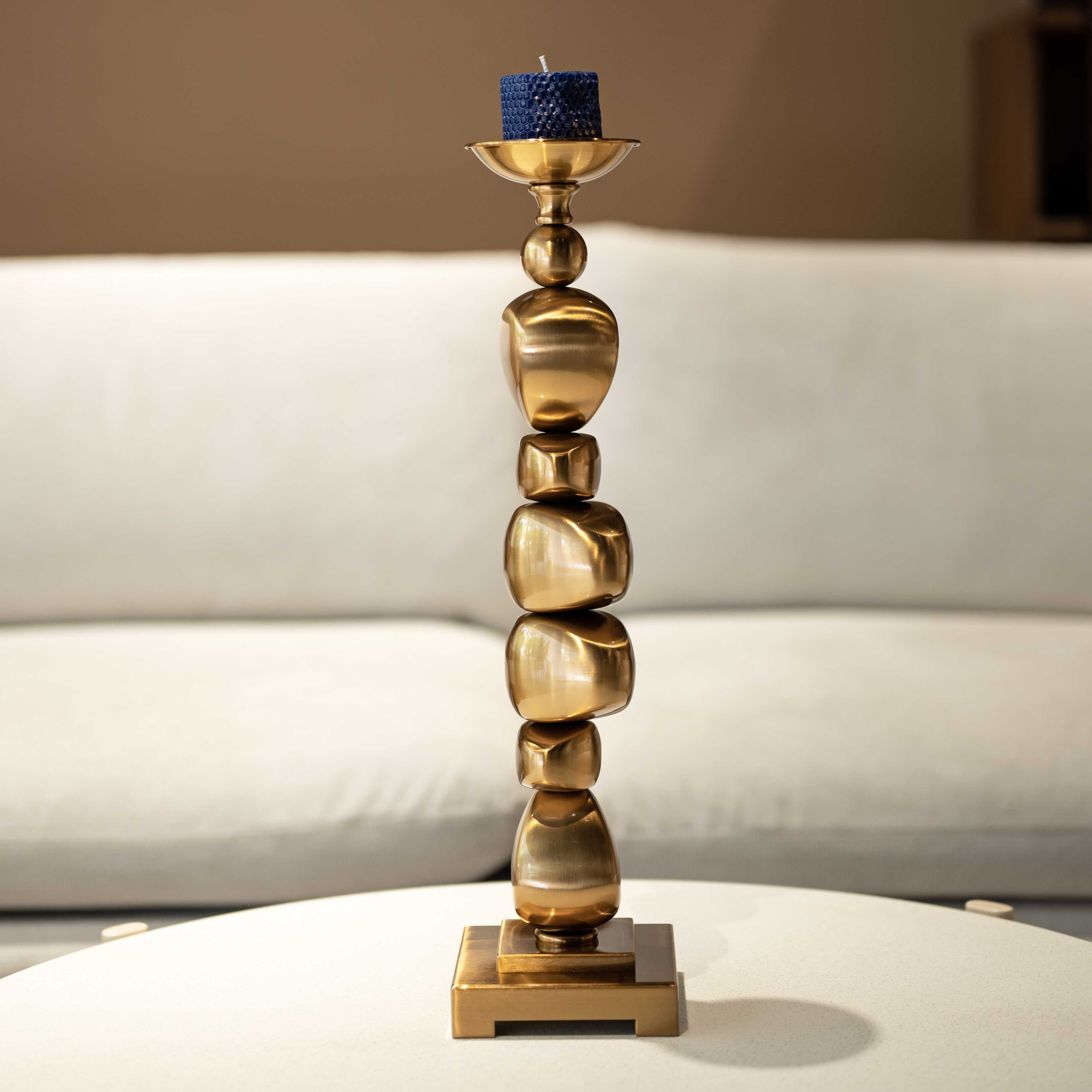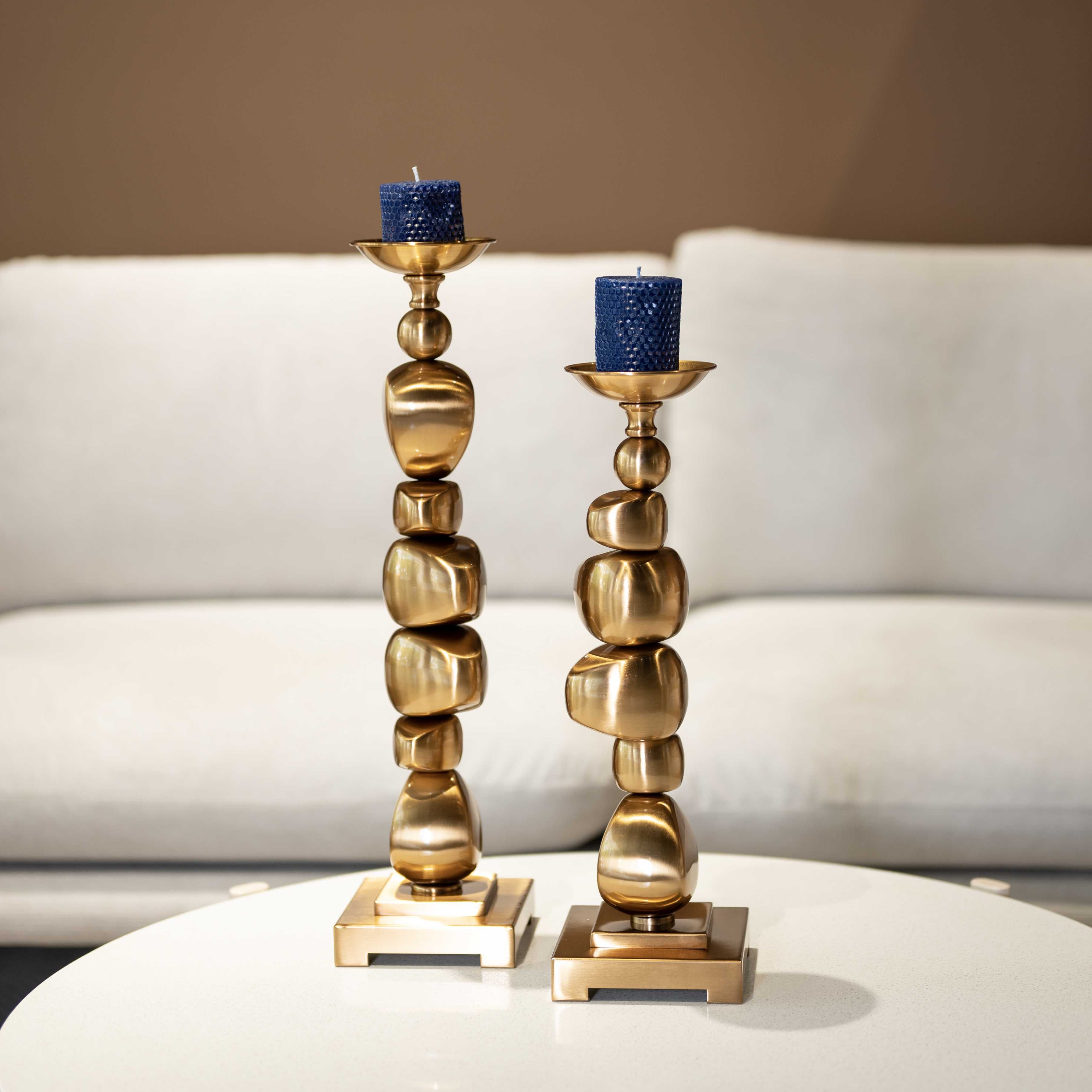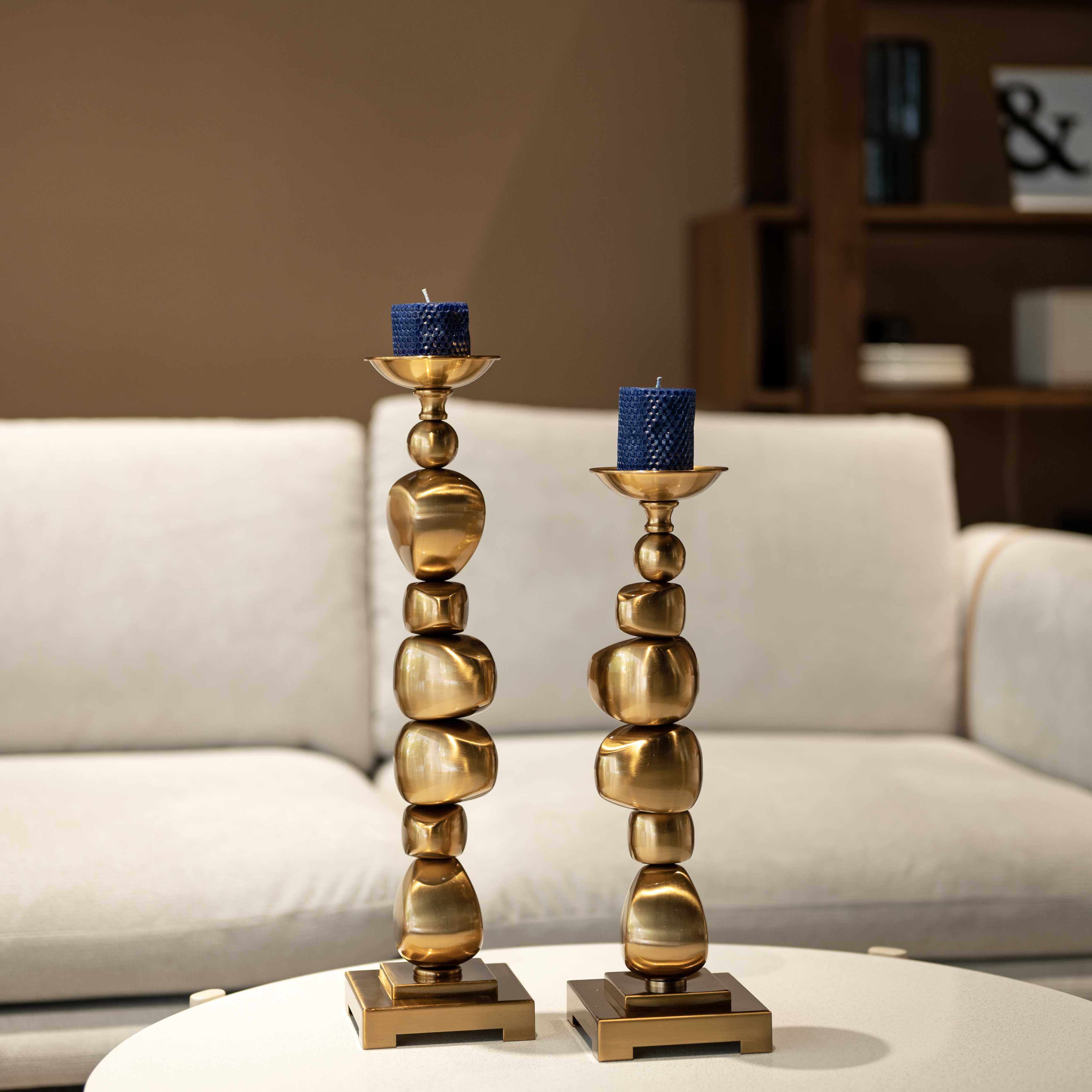 Stacked is a set of two glamorous candle holders. This set is gives the illusion of golden rocks stacked one upon another, and the gold makes these pieces royal in every sense. Whip these beauties out to have yourself a candle light dinner at home, or during festivities.