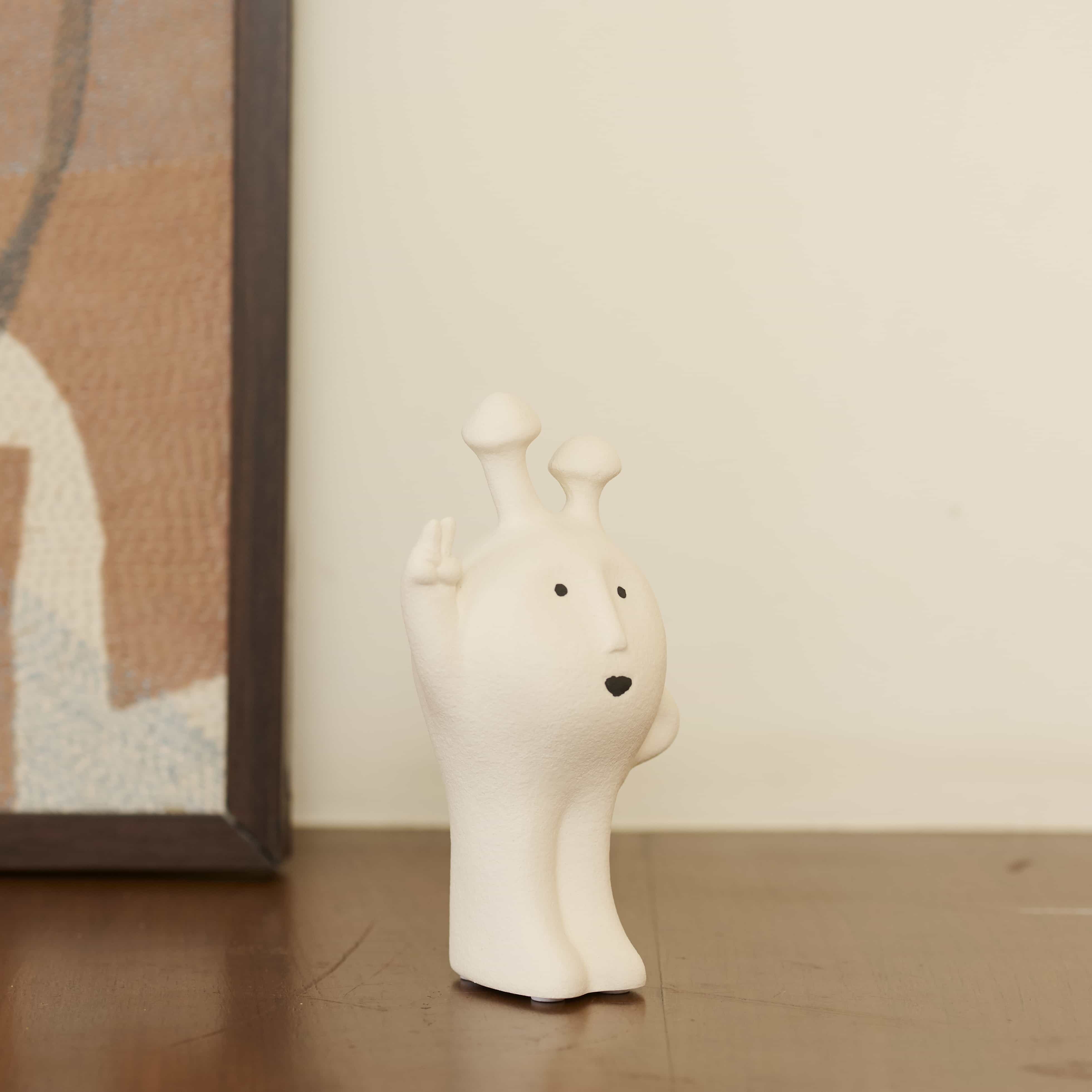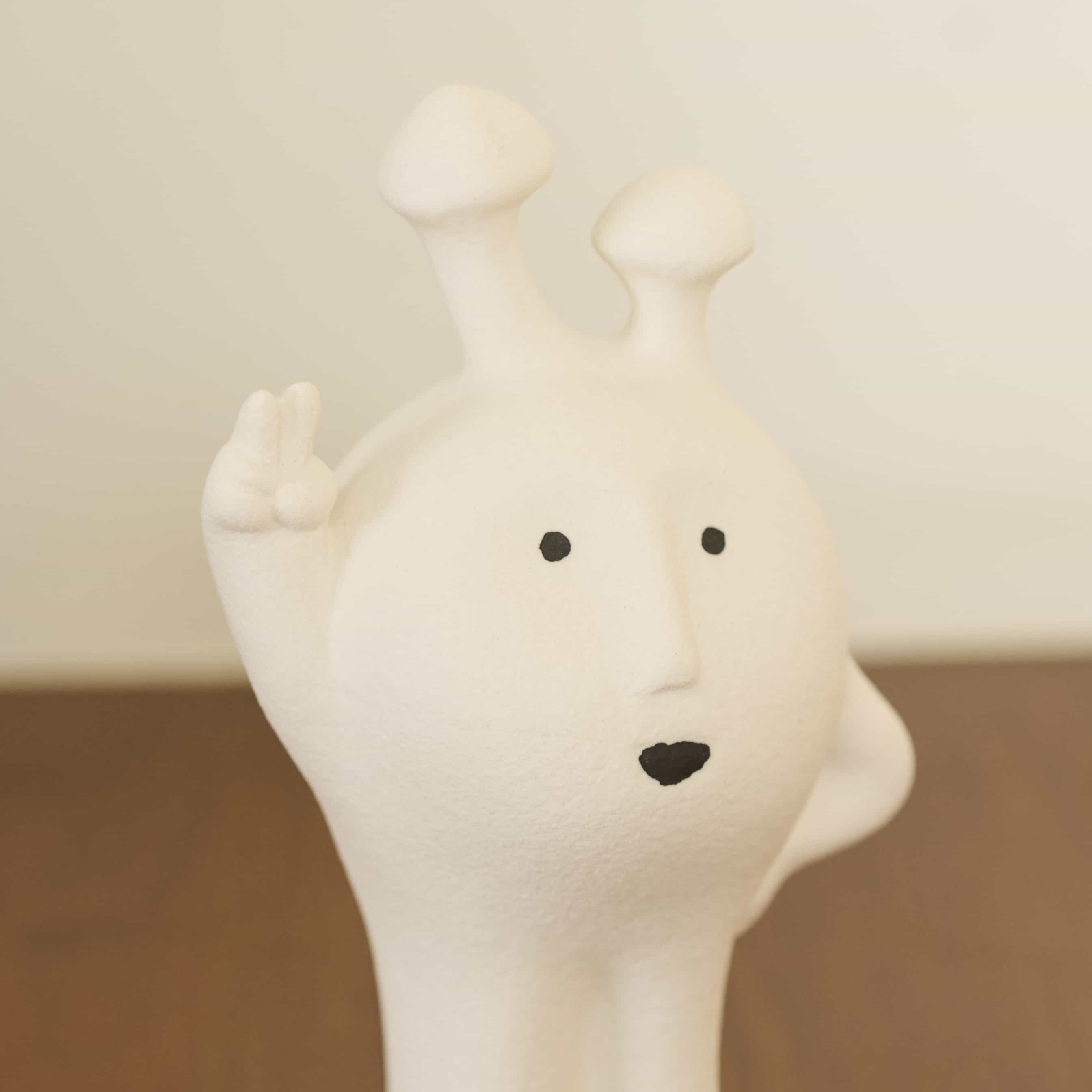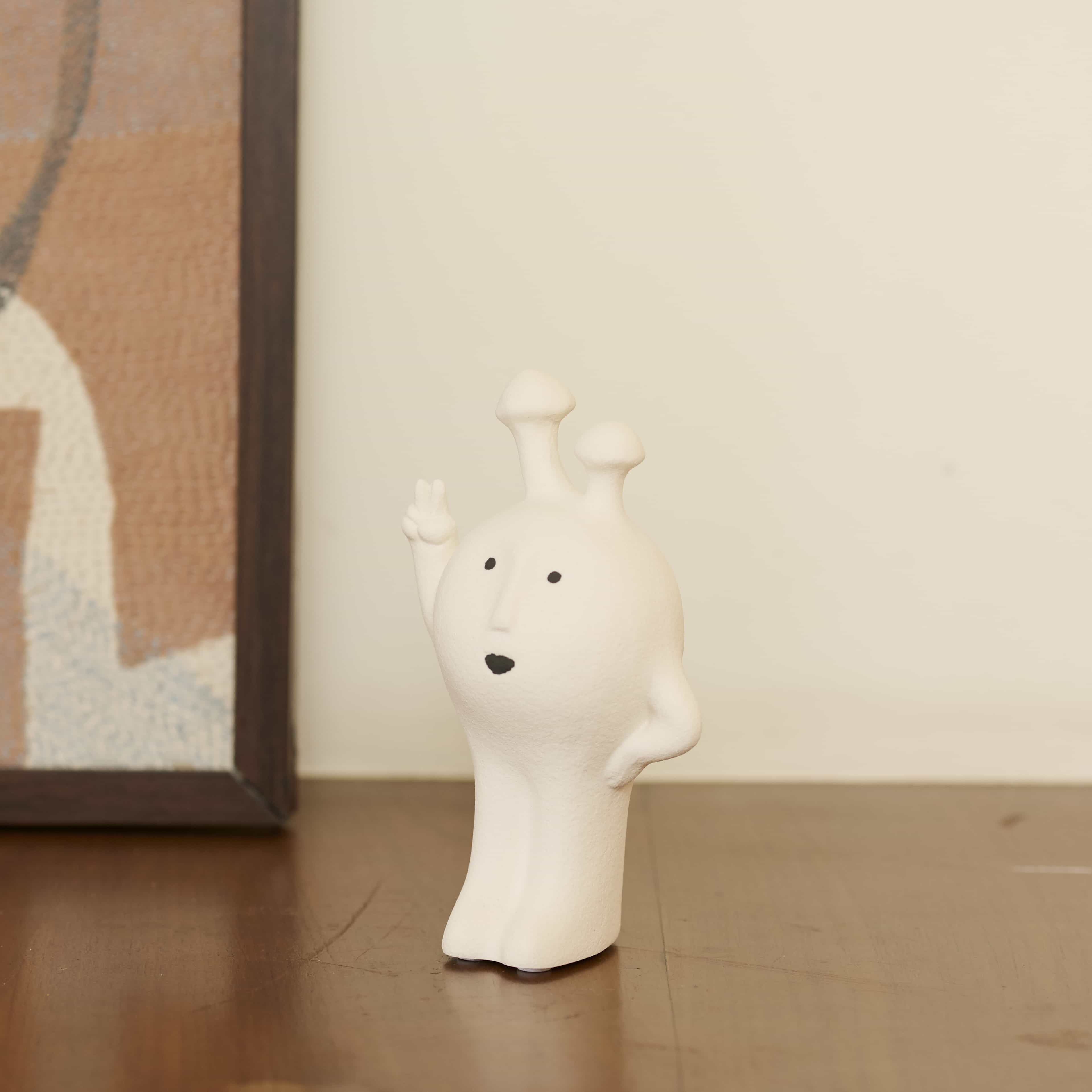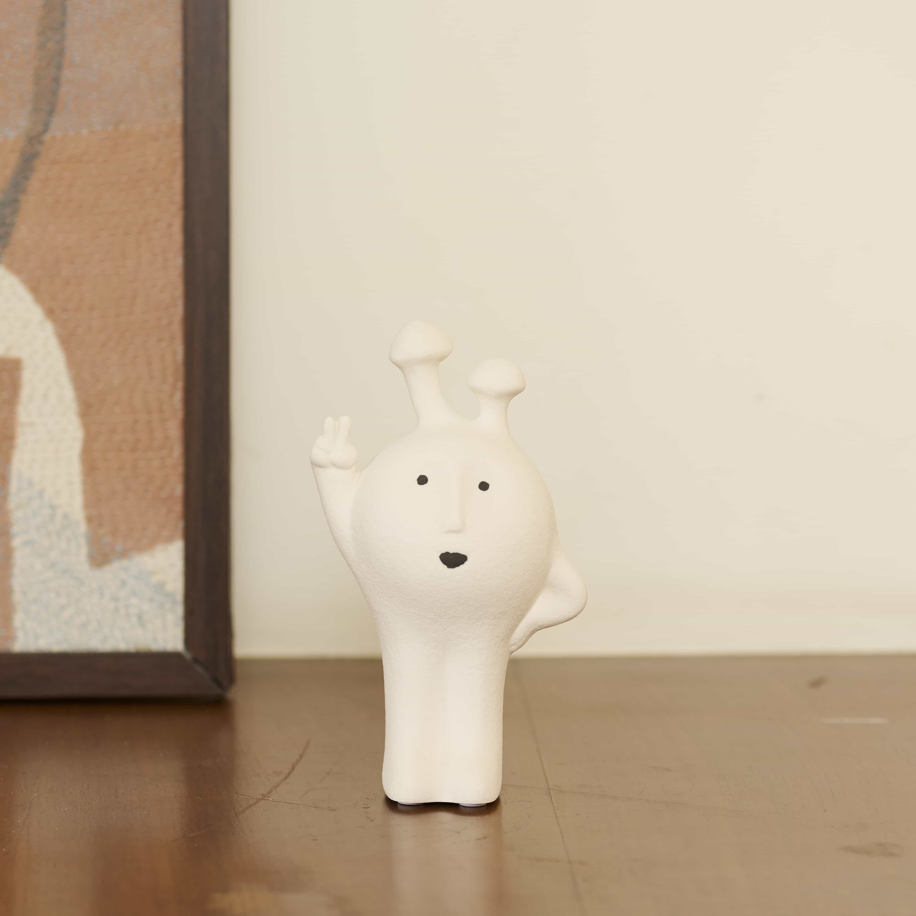 Wavey is a cheerful little curio in matte white, antenna tips and a friendly wave make it feel like a tiny greeter. Lighthearted and modern, it lifts moods, sparks joy, and keeps company.
