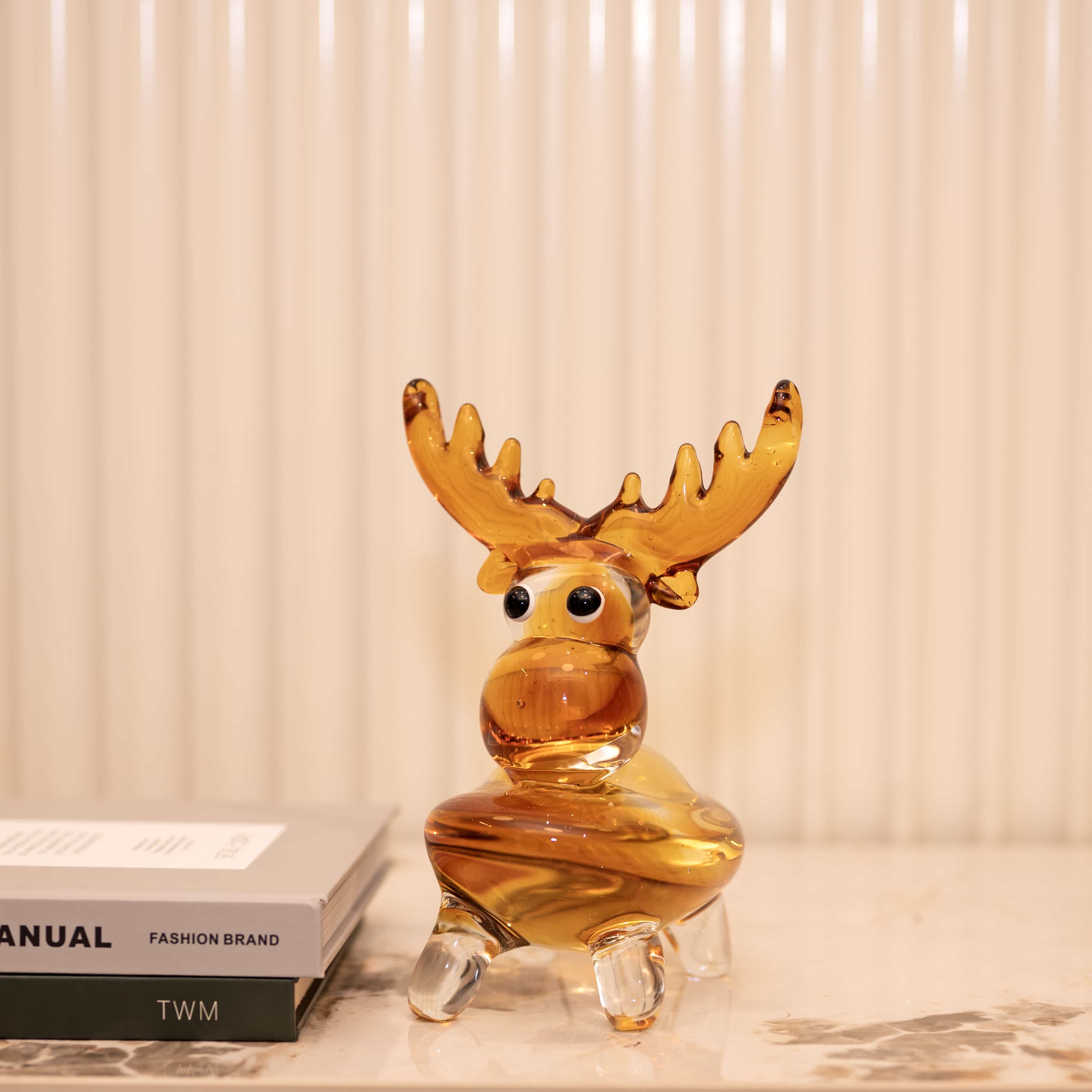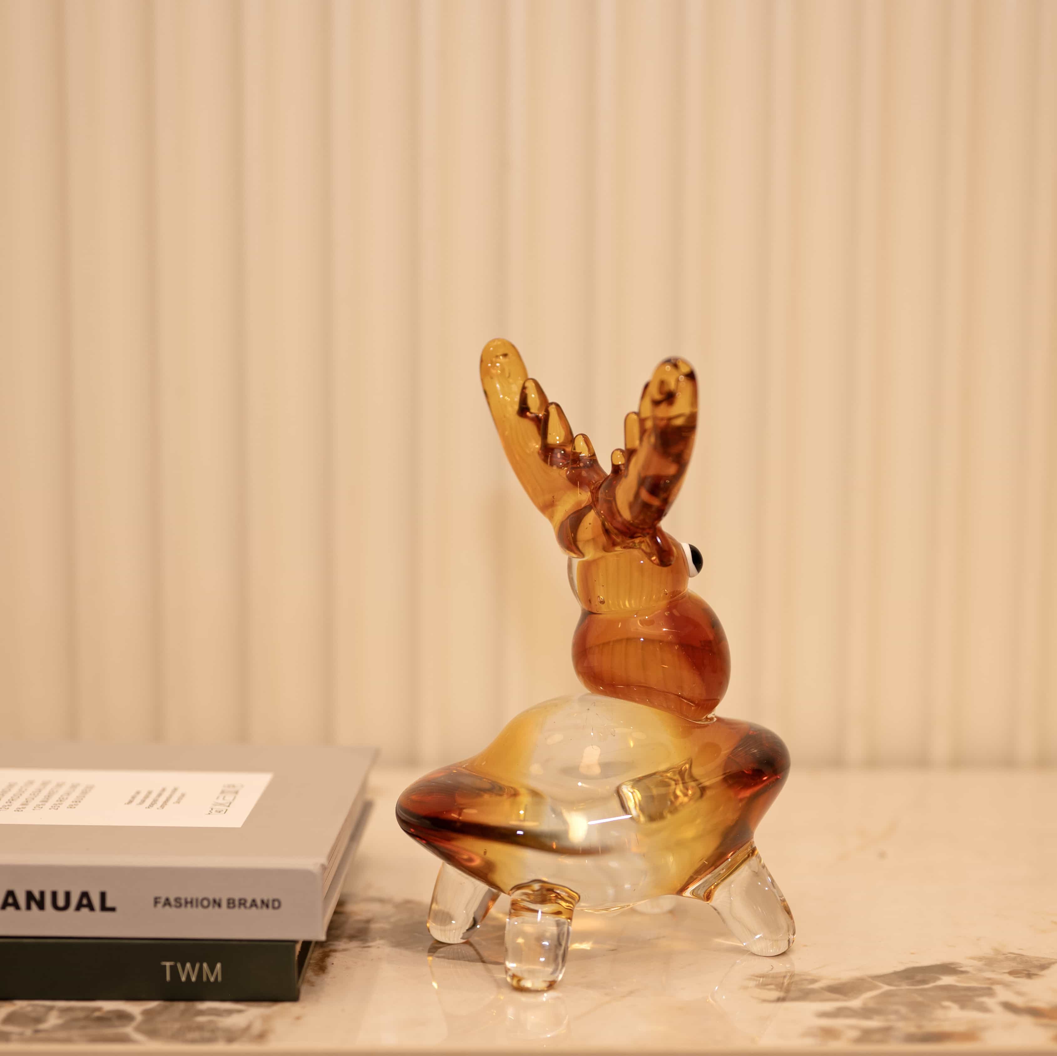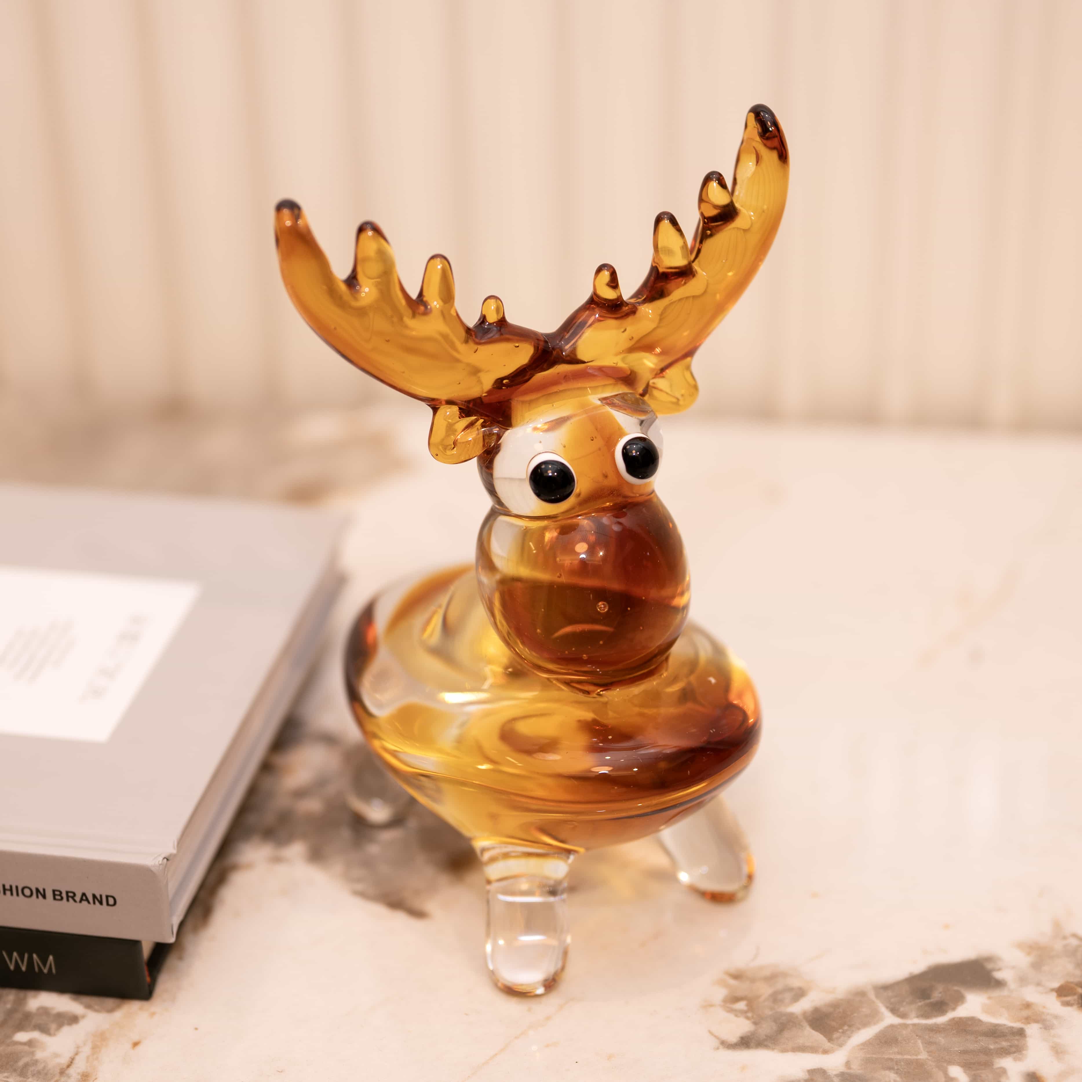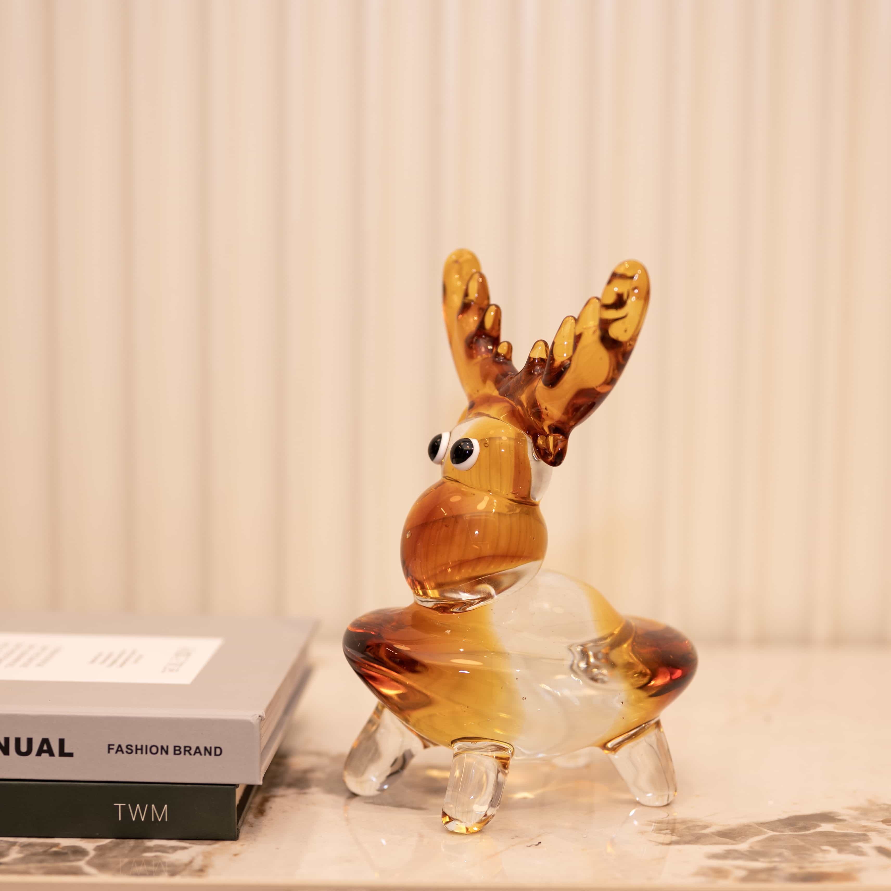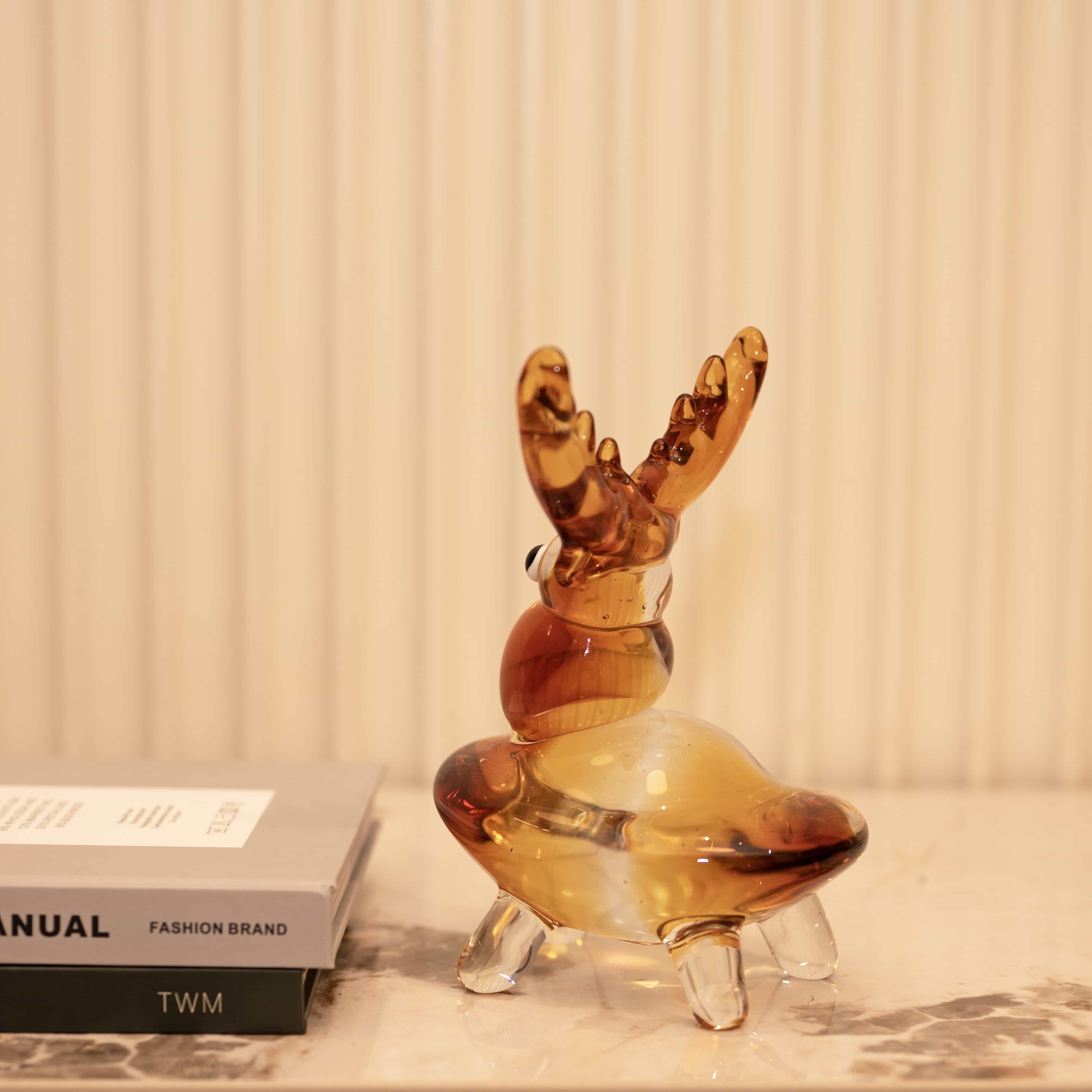 Antler is a finely crafted glass figure with warm amber tones and detailed antlers, creating a charming woodland character. Its glossy finish and delicate shaping make it a standout accent for shelves, display cabinets, or seasonal décor arrangements.