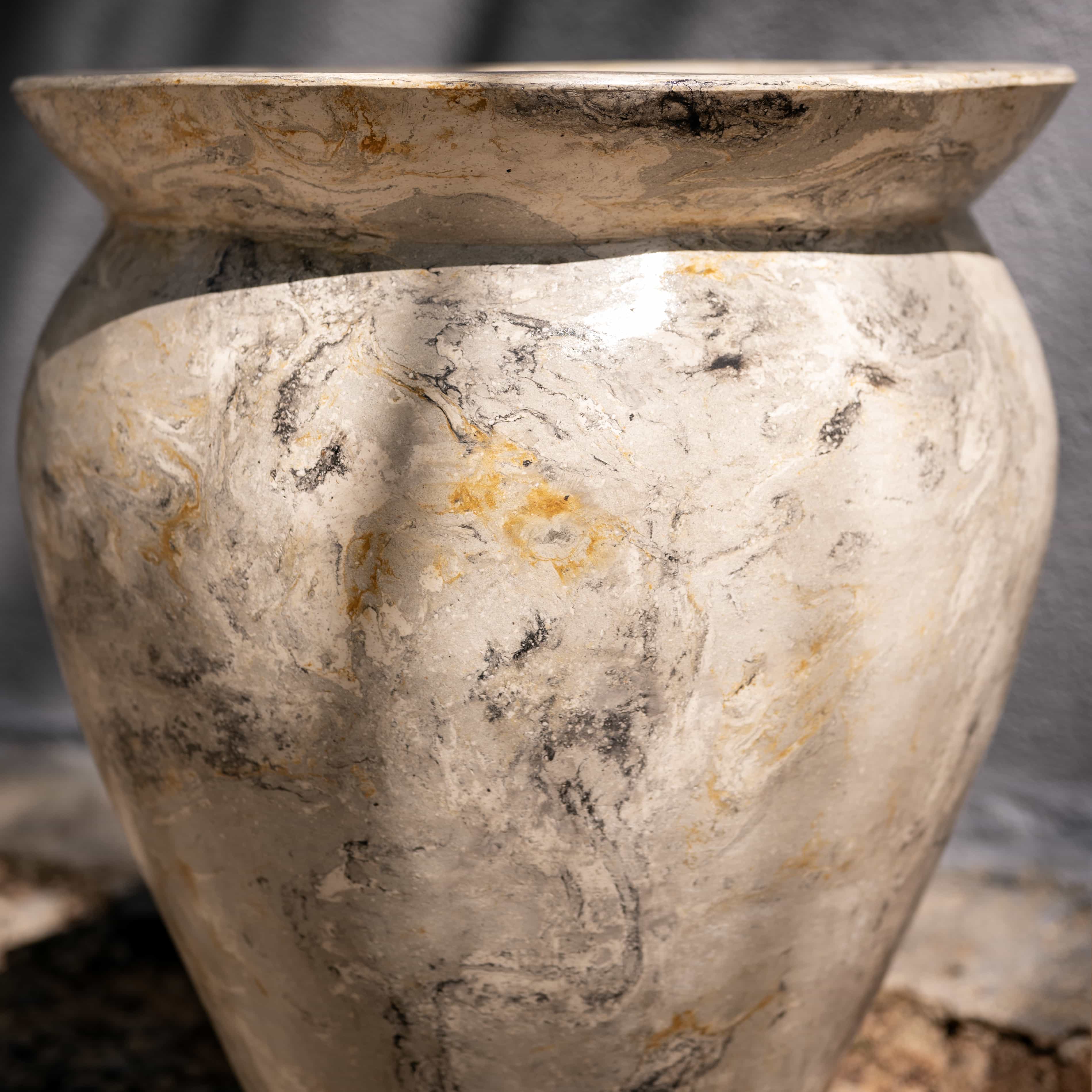 Swirls of liquid stone are captured in a frozen dance, mimicking the soft movement of clouds passing over a mountain peak, bringing the ethereal marbling of the earth into the intimate corners of a home.