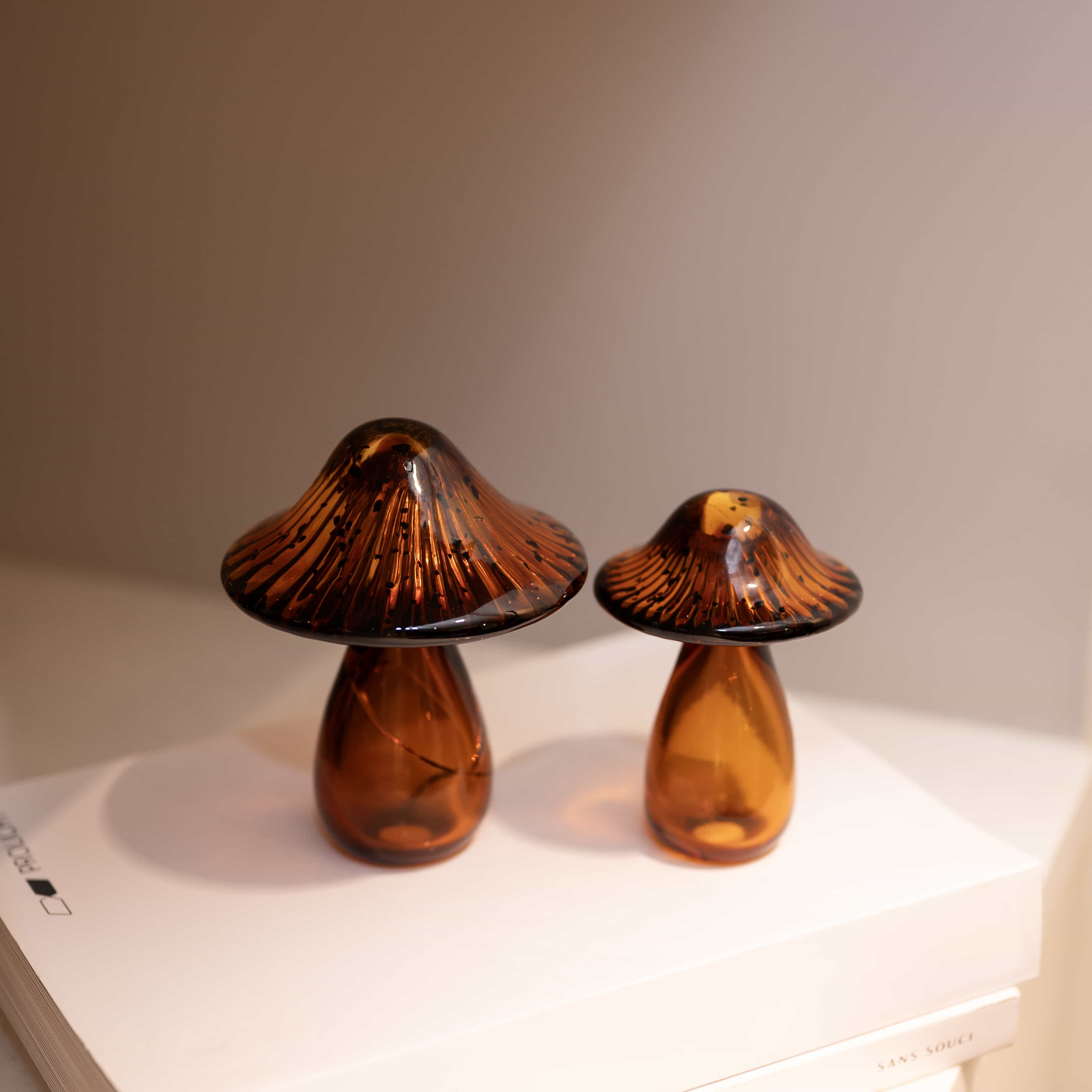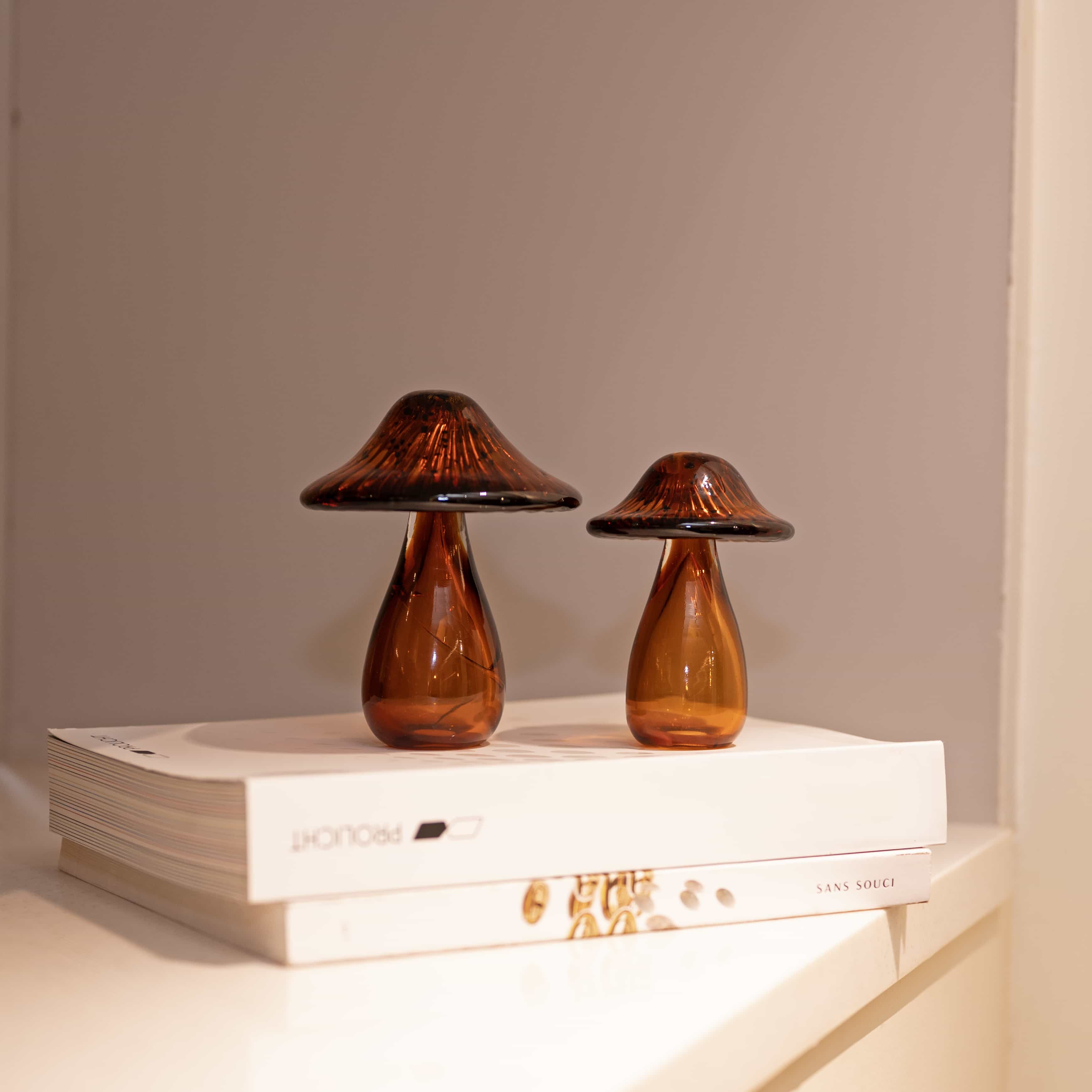 Holy, shrooms! is a set of two sleek Blown glass mushrooms. If nature is your one true love, these pieces are your grail. Add these to your space to beautify it, or place them in your mini garden to up the art game.