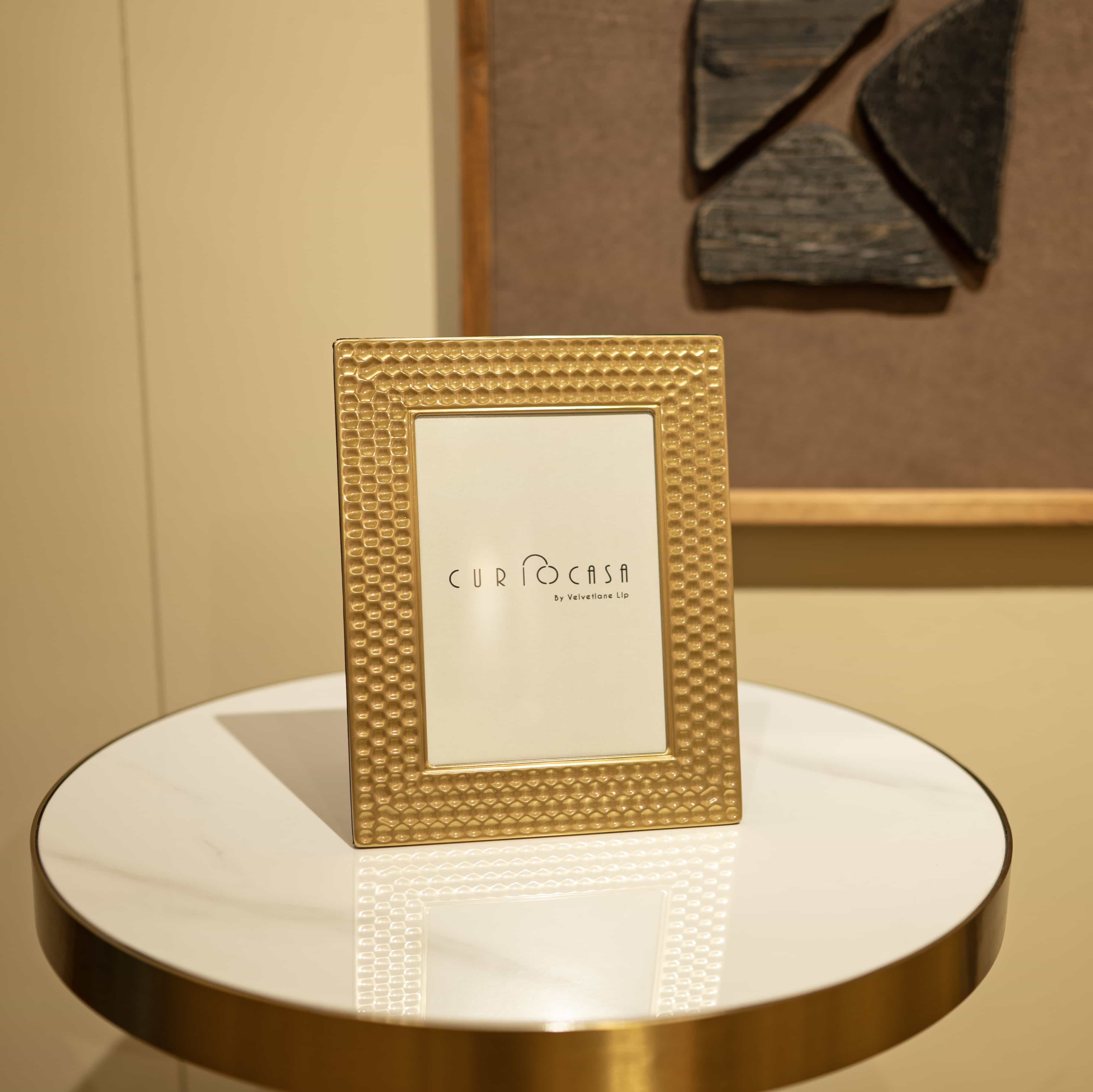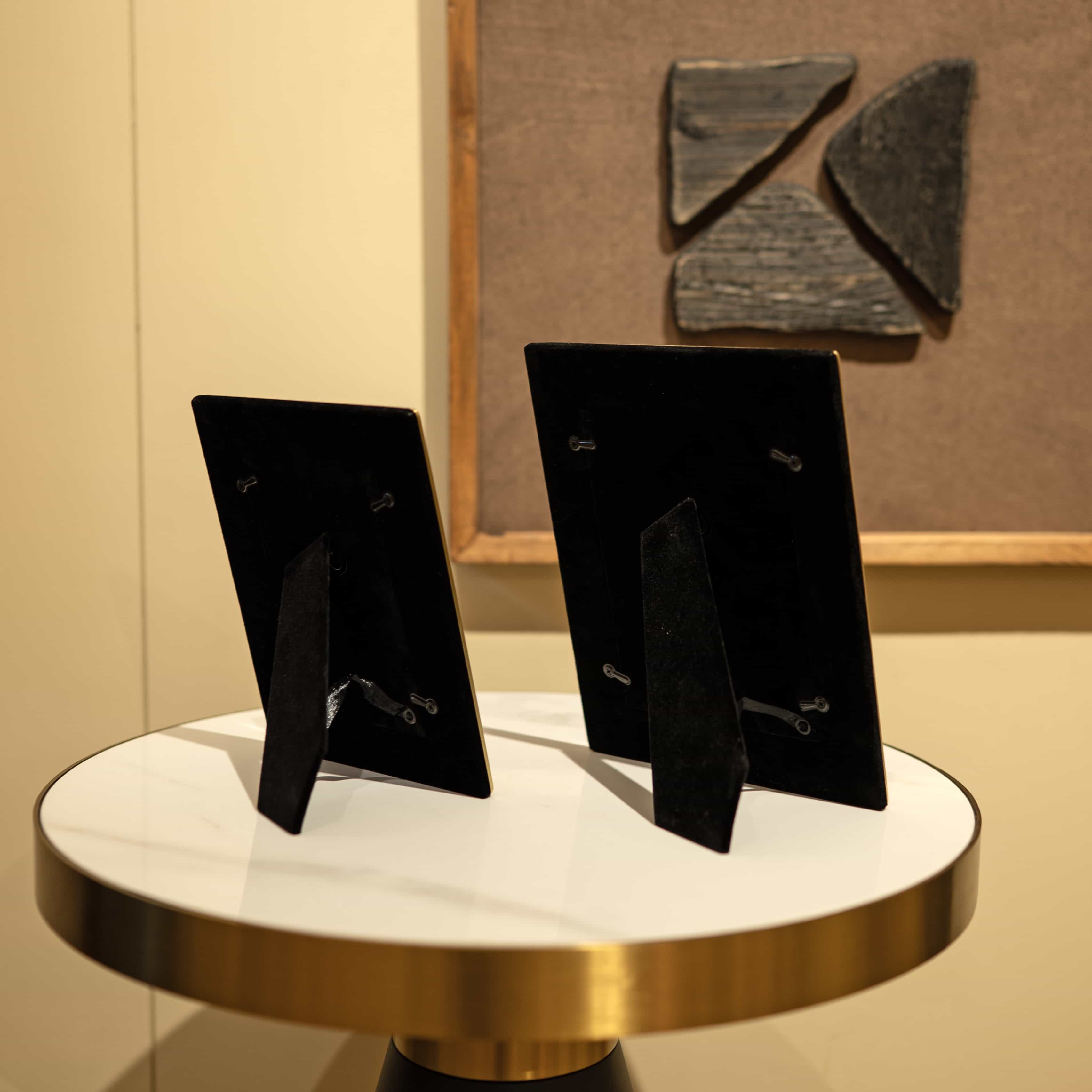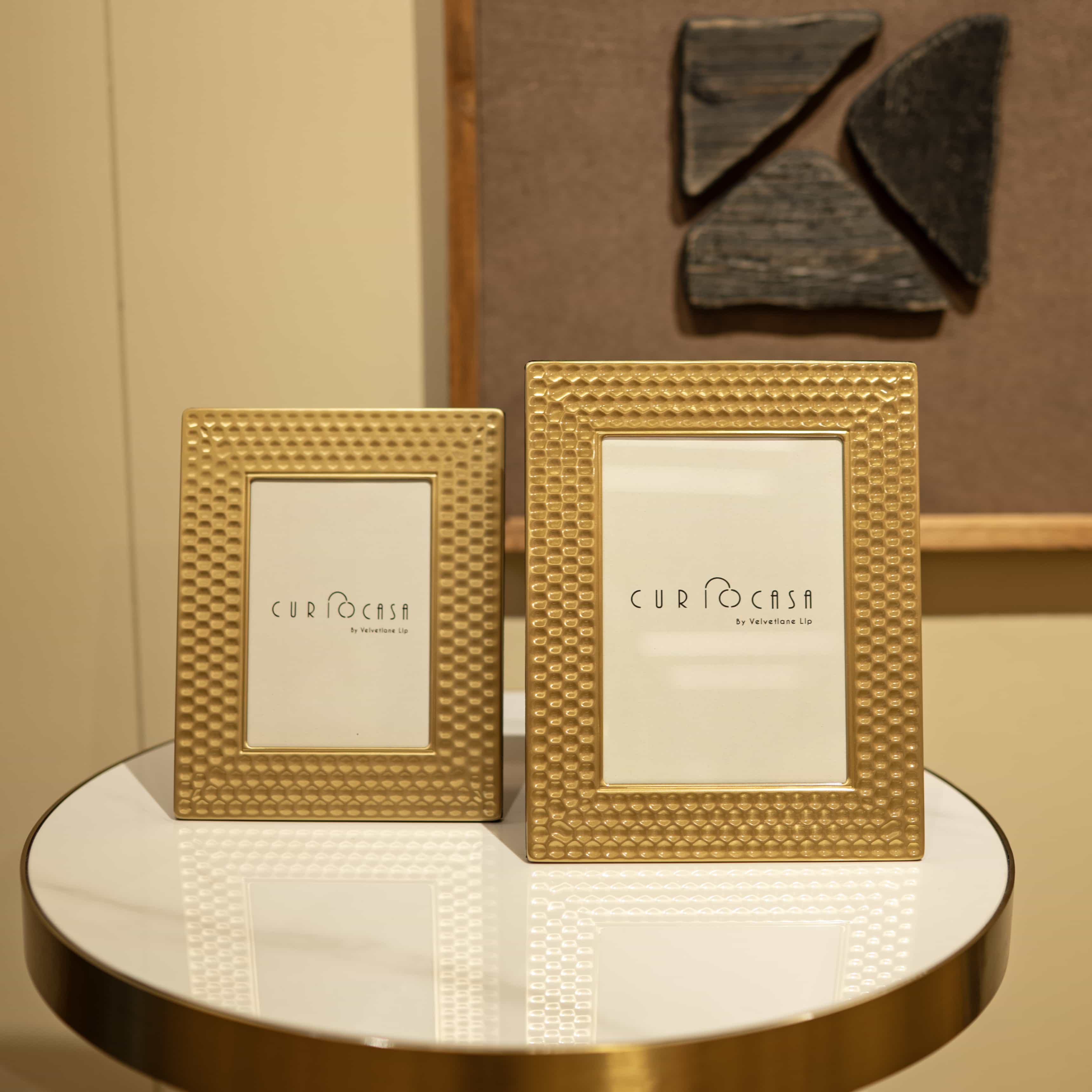 Lustra is a set of two gold frames with textured detailing. Use this set to add a touch of gold and shine into your space, bringing in a vintage, royal feel to it.