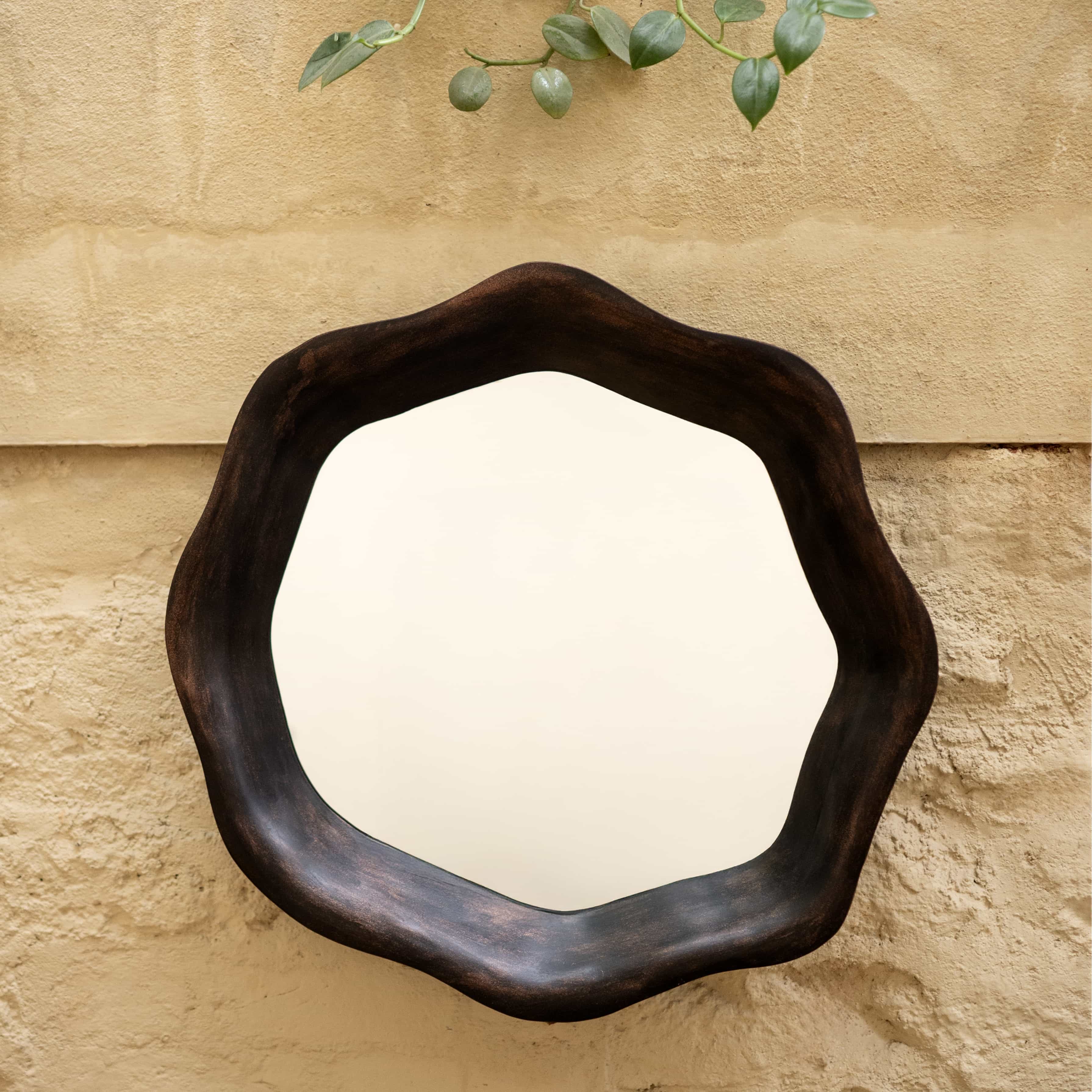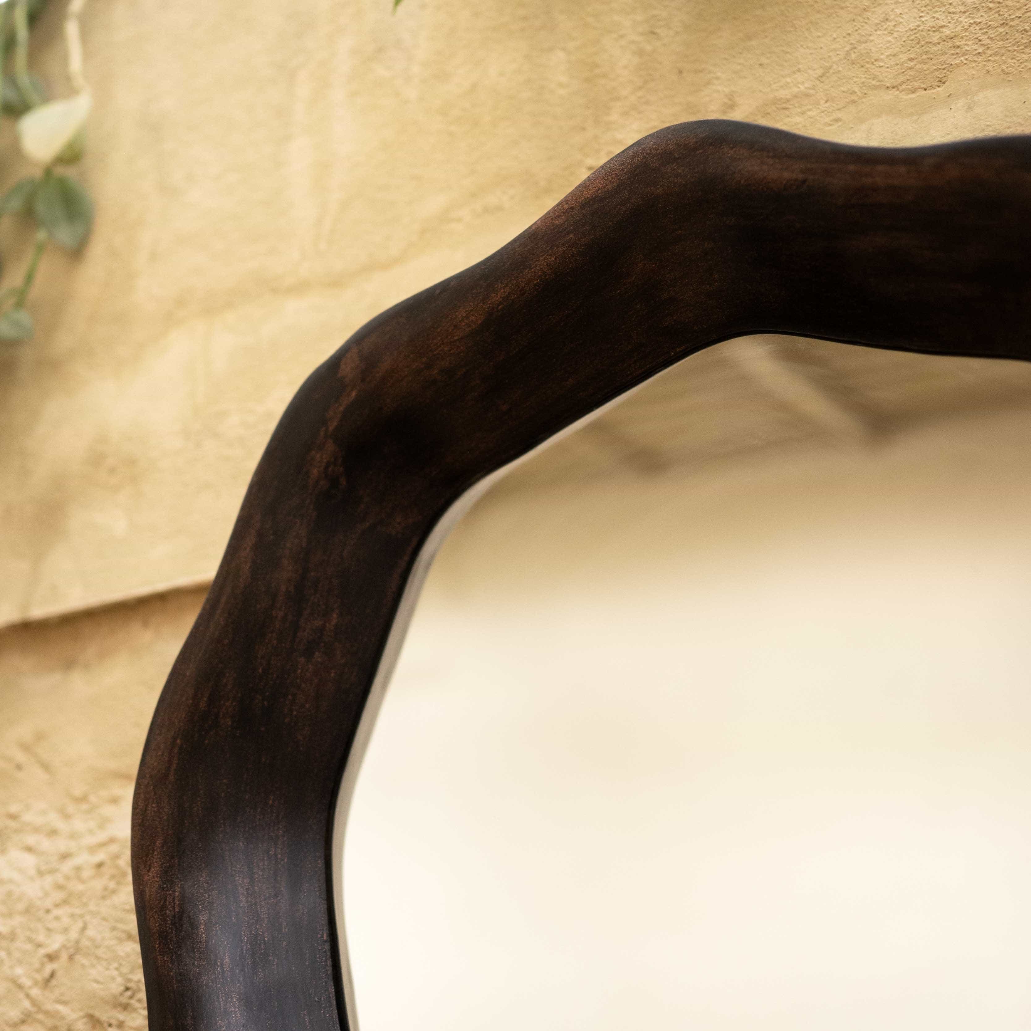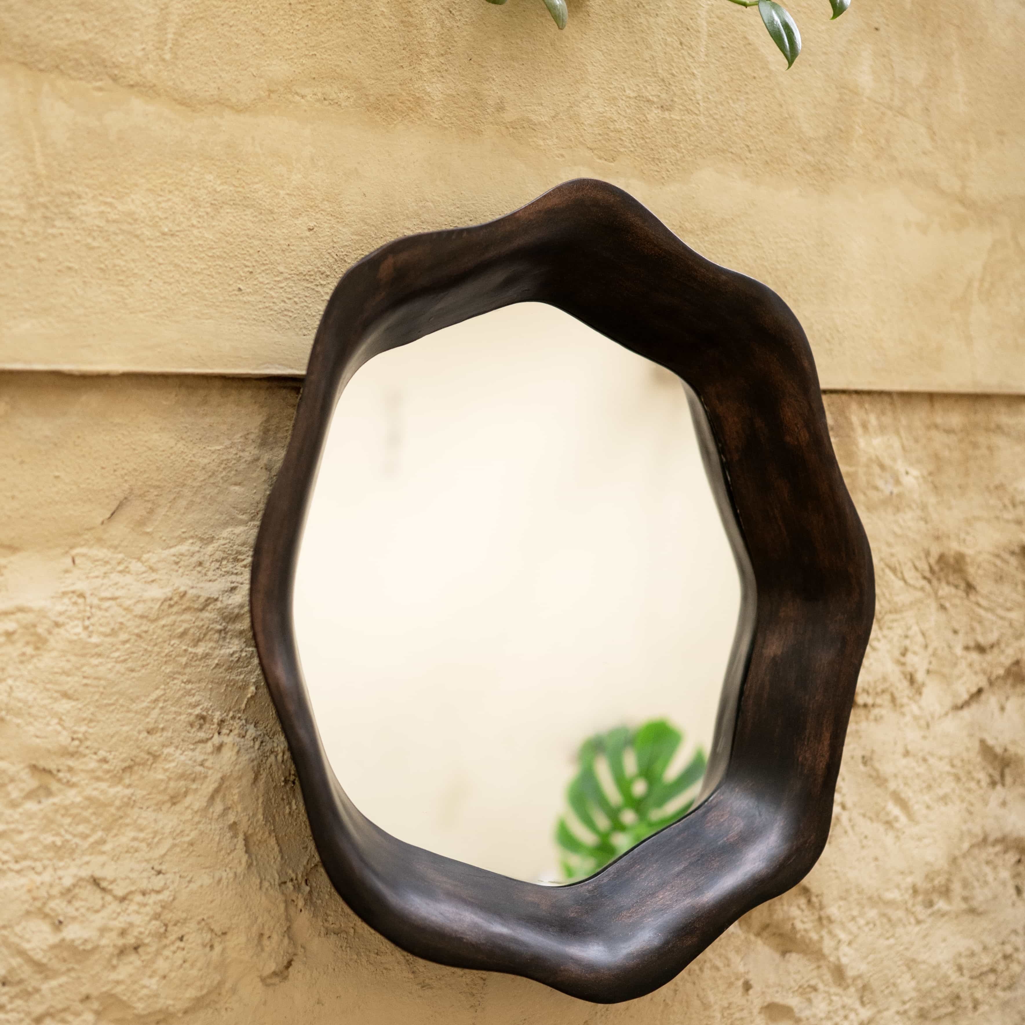 Reflect is a beautifully crafted wall mirror with wooden detailing that adds character to any space. Its unique shape makes it a perfect fit for an entryway, inviting warmth and charm the moment you walk in.
