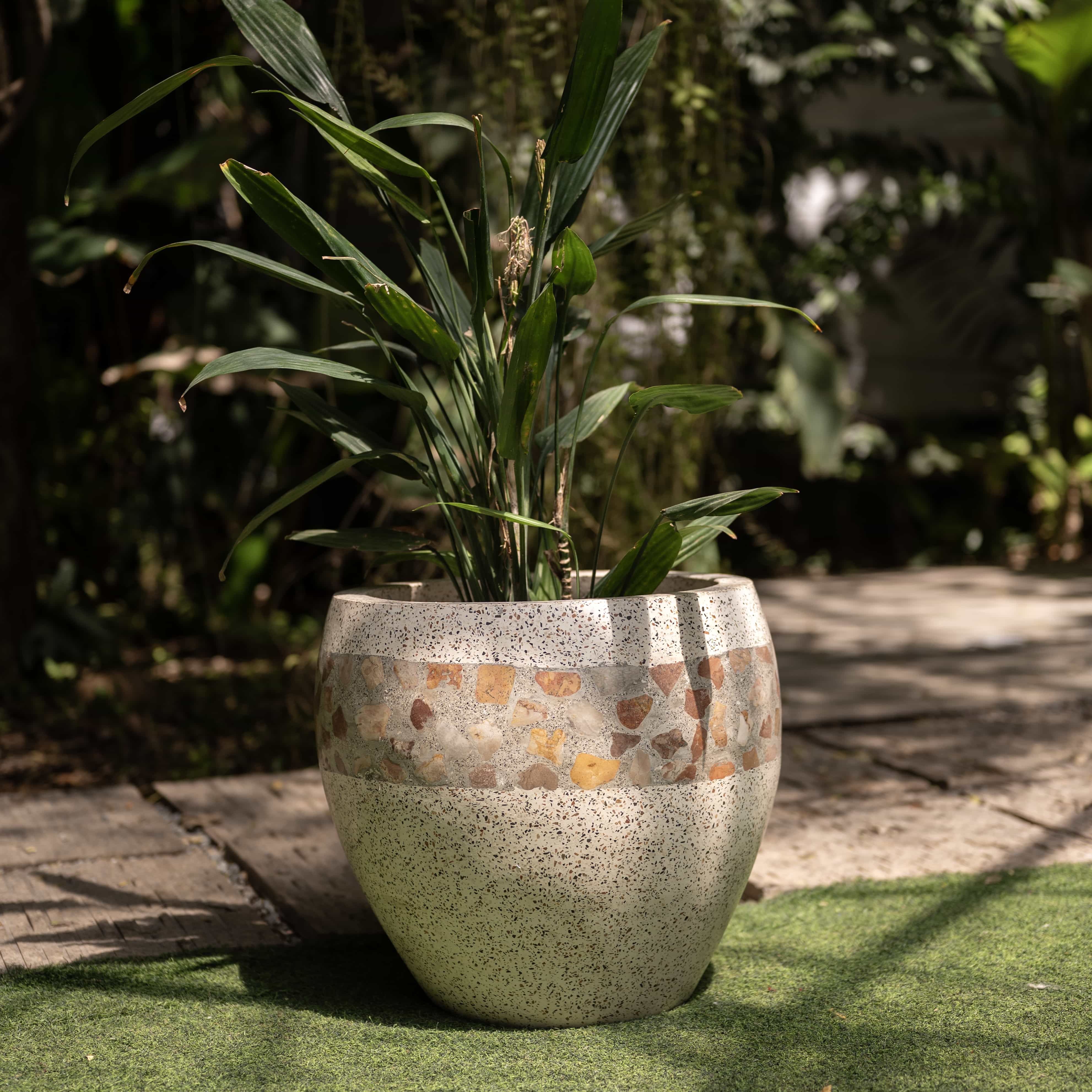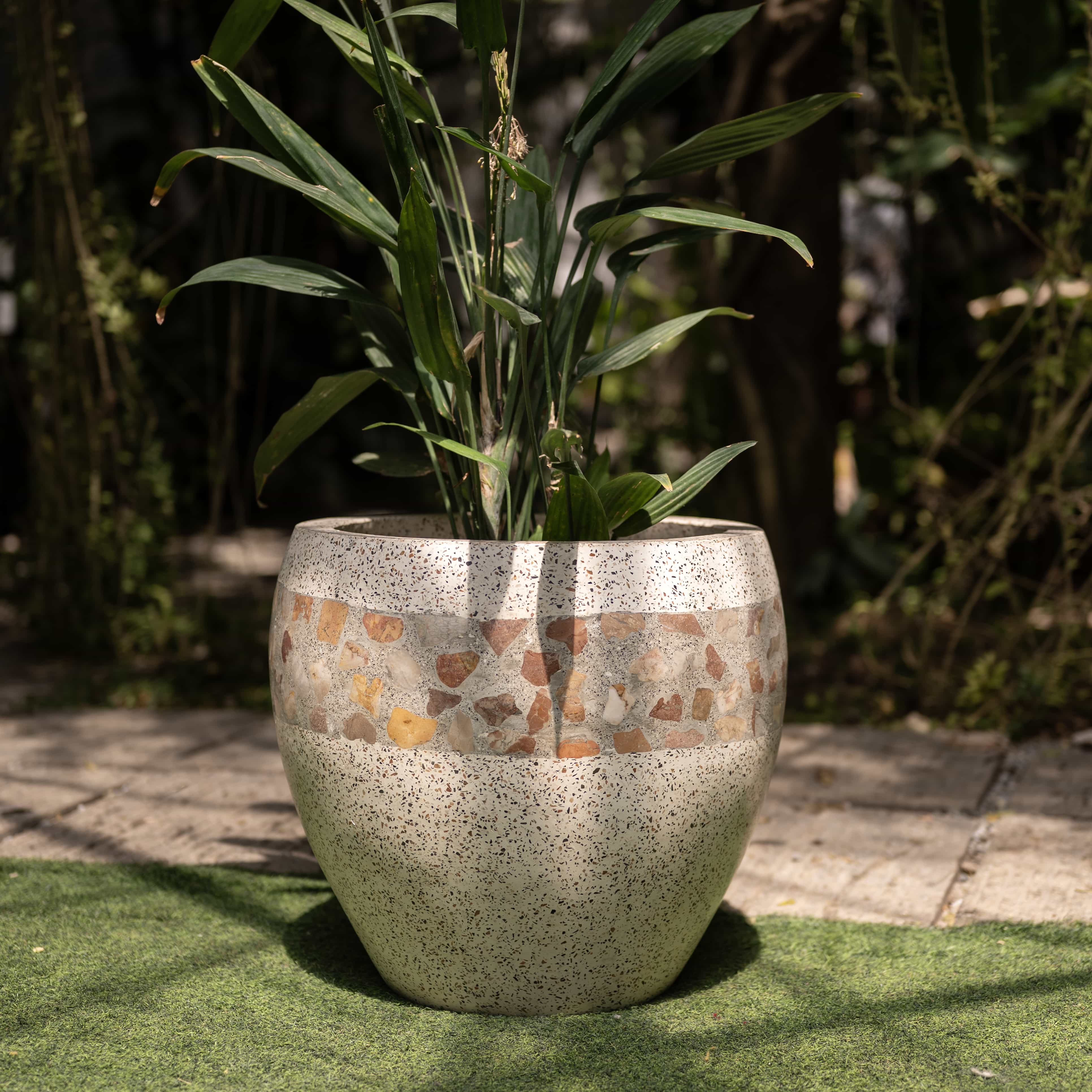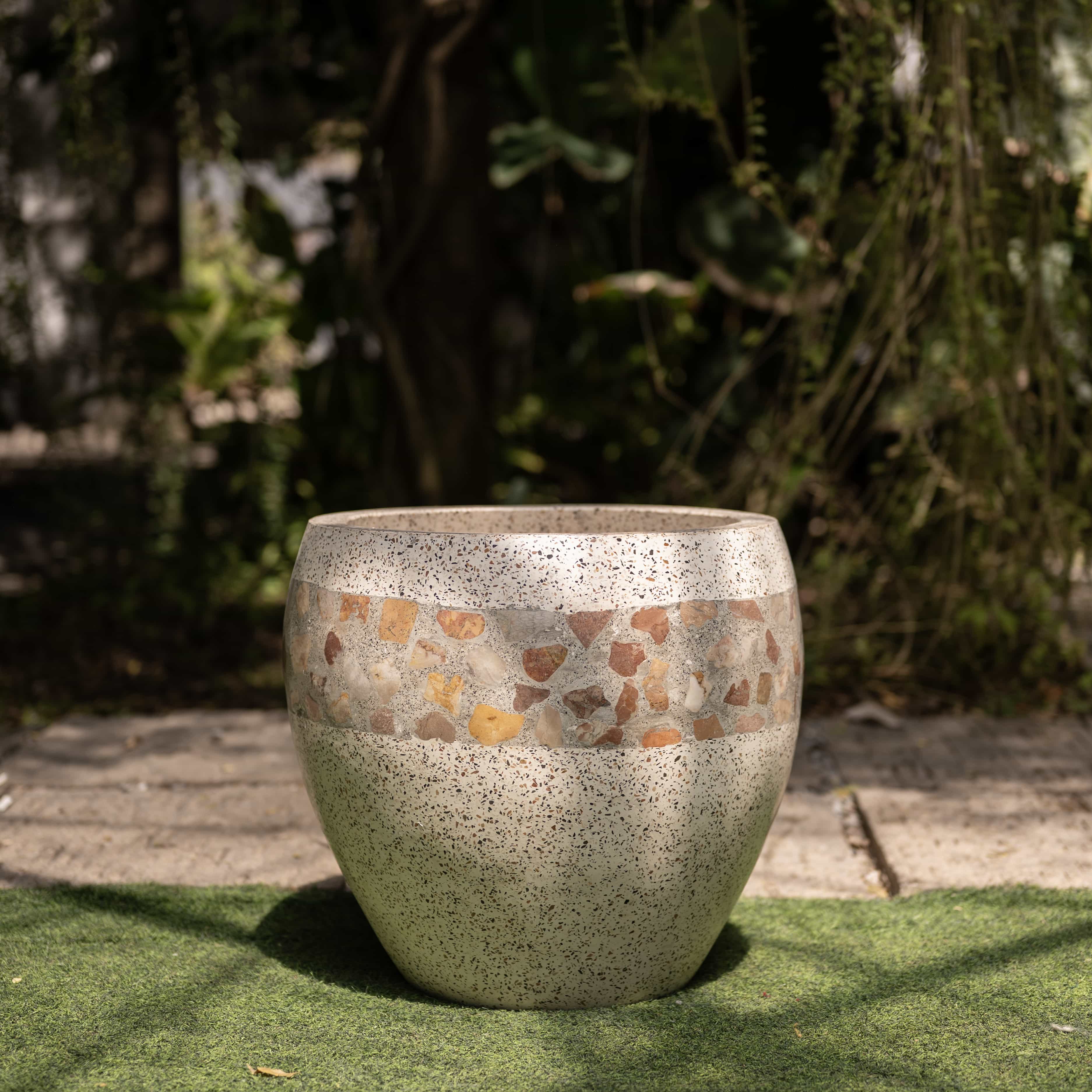 Rough-cut fragments of the earth are hand-pressed into a bone-white canvas to honor the beauty found in the broken and the bold. This vessel stands as a sculptural dialogue between raw geological grit and the refined elegance of a curated home.