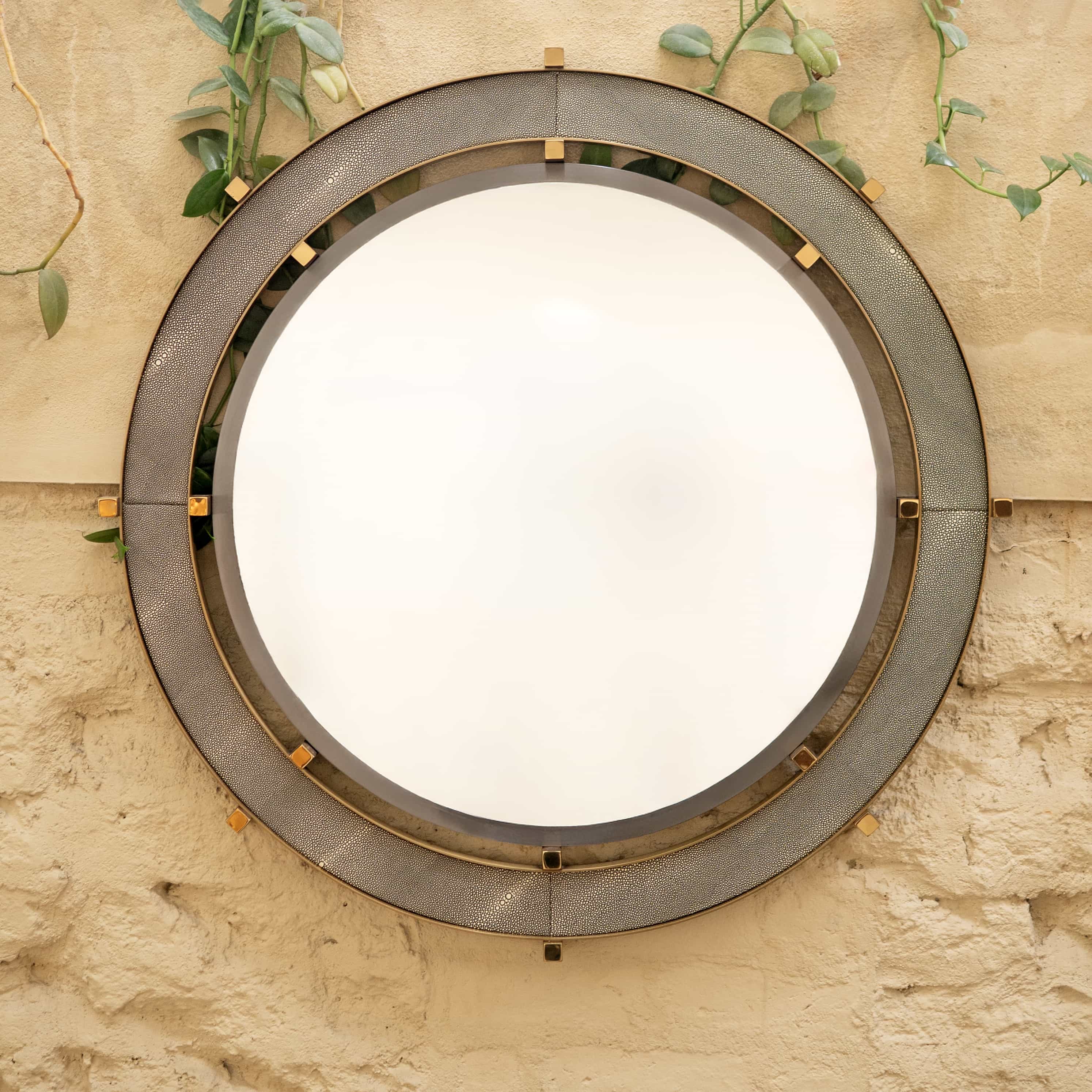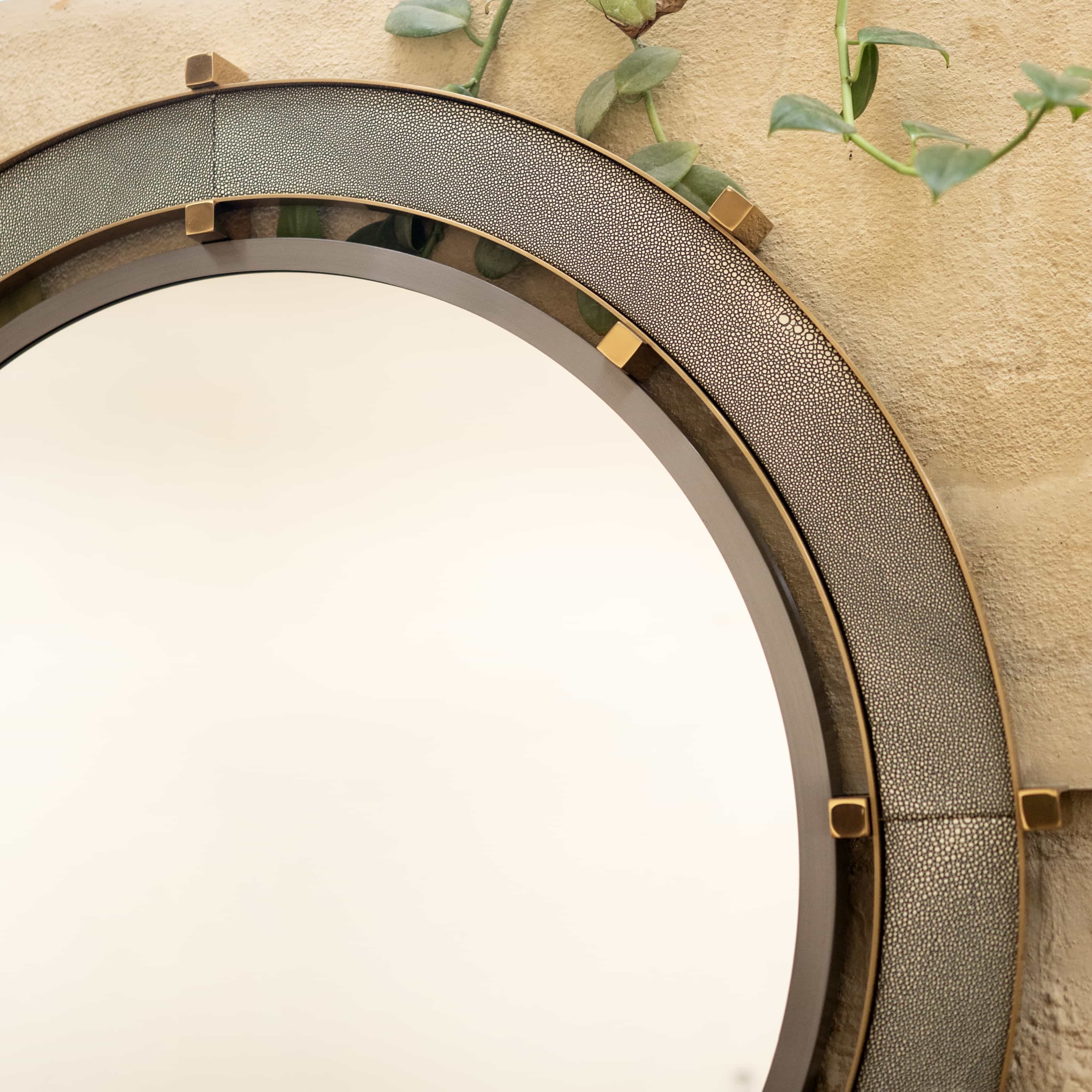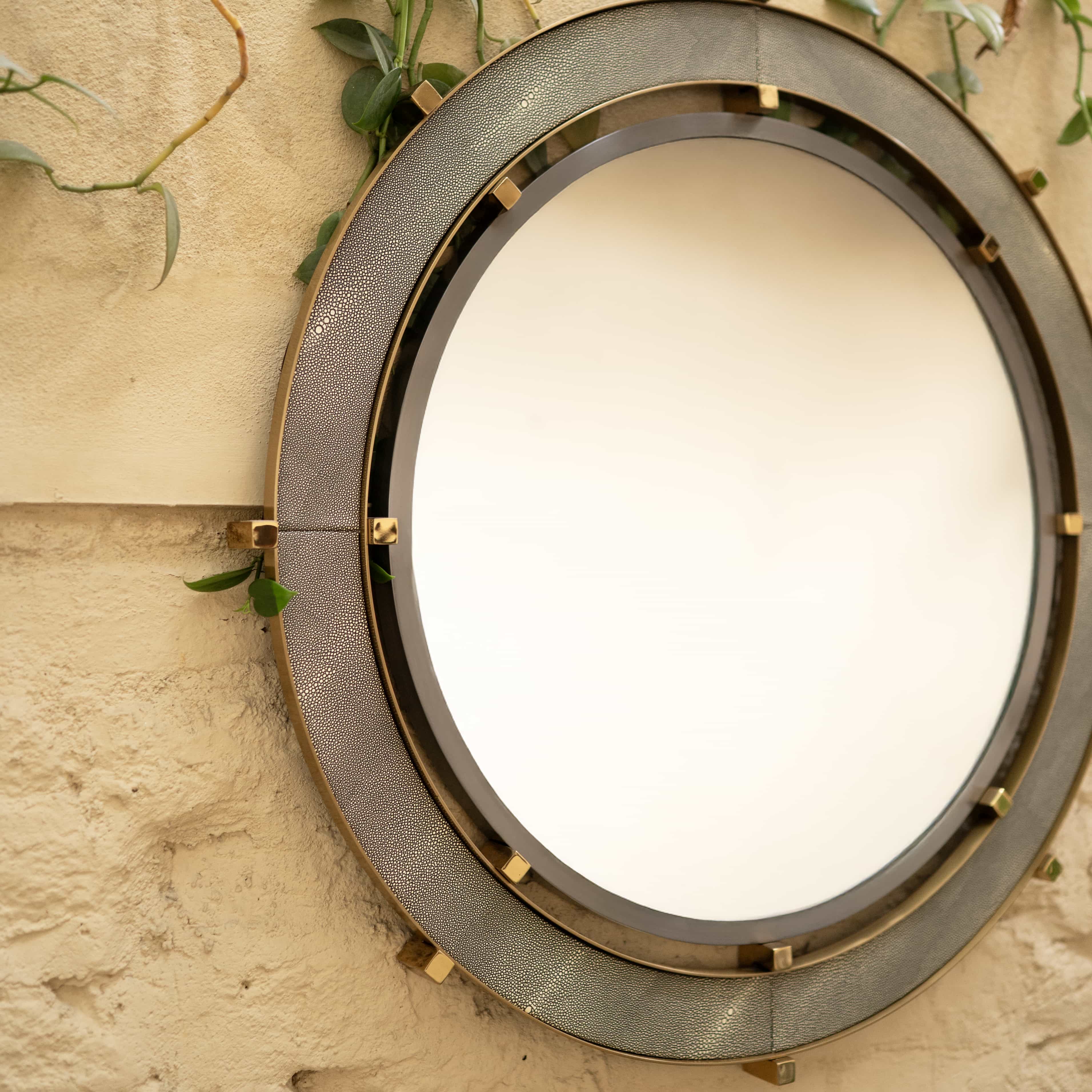 Greyscale is a wall mirror with ring detailing. This mirror would be perfect in a bathroom or a Foyer which has a lot of color tones. It would bring that sense of balance in visuals.