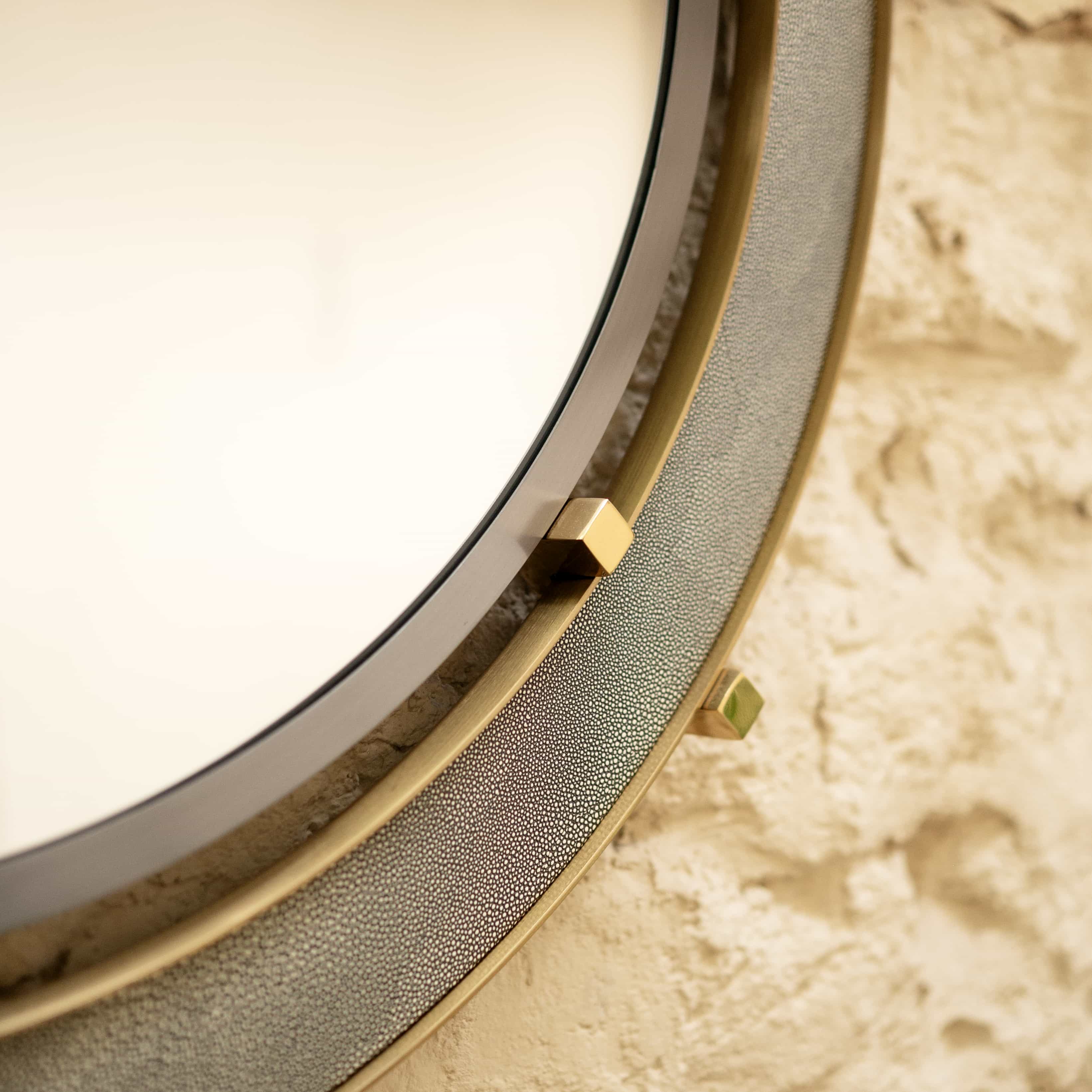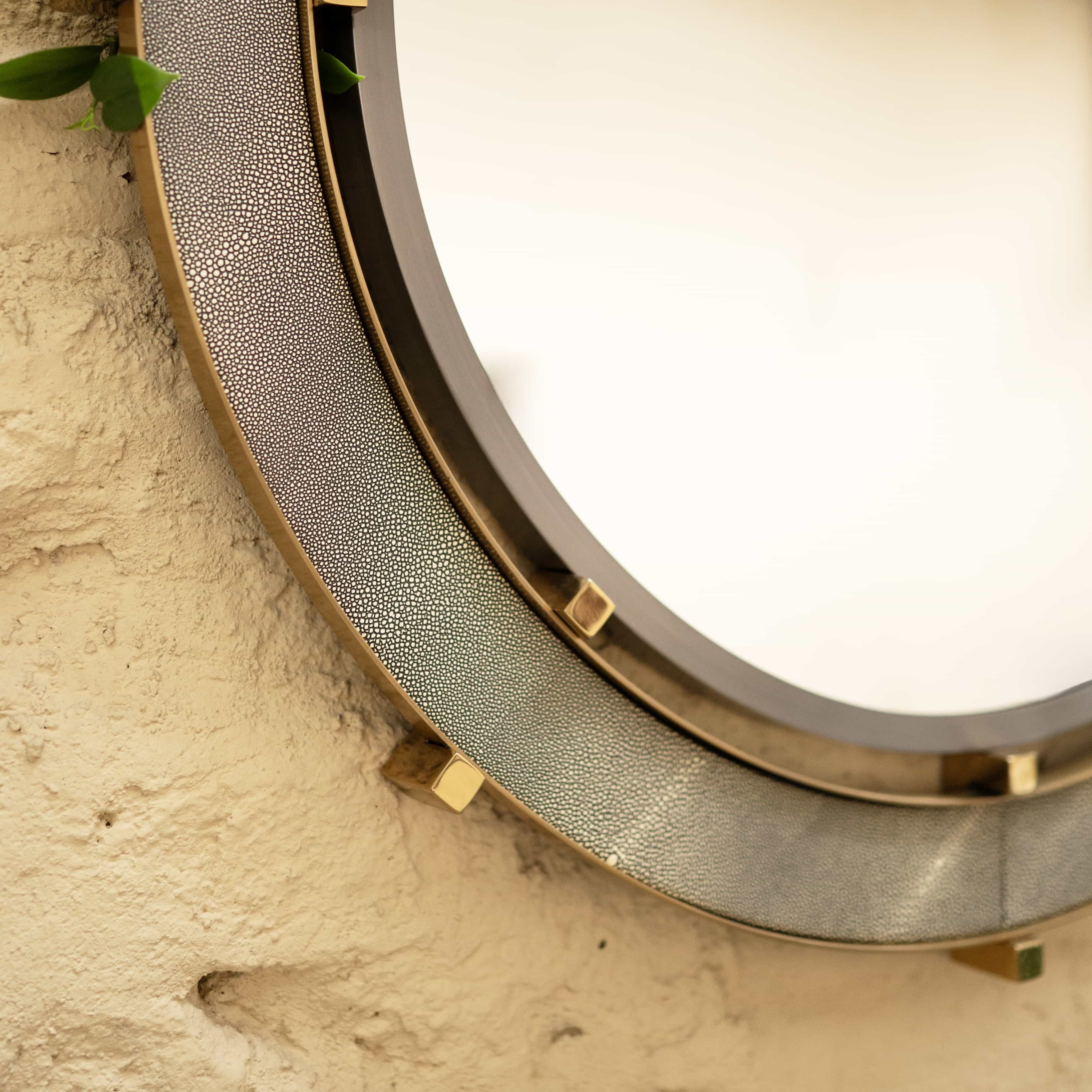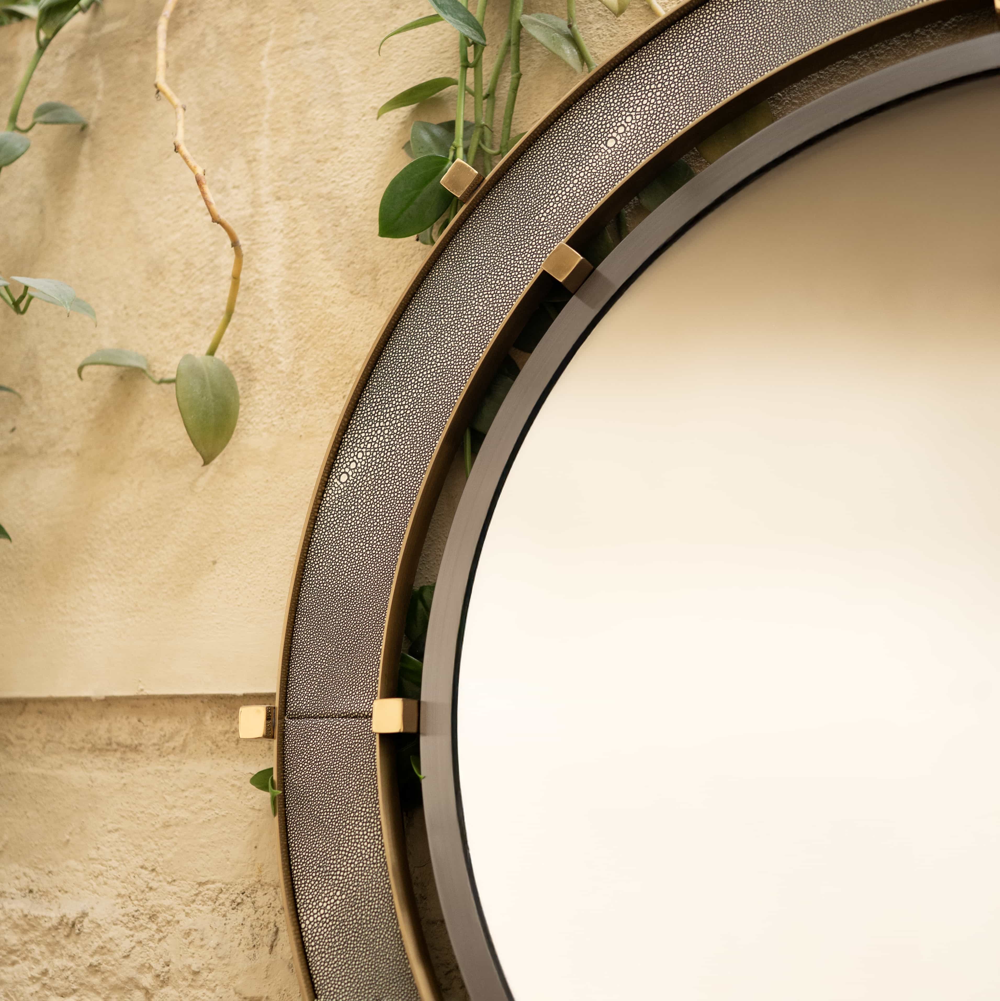Greyscale is a wall mirror with ring detailing. This mirror would be perfect in a bathroom or a Foyer which has a lot of color tones. It would bring that sense of balance in visuals.